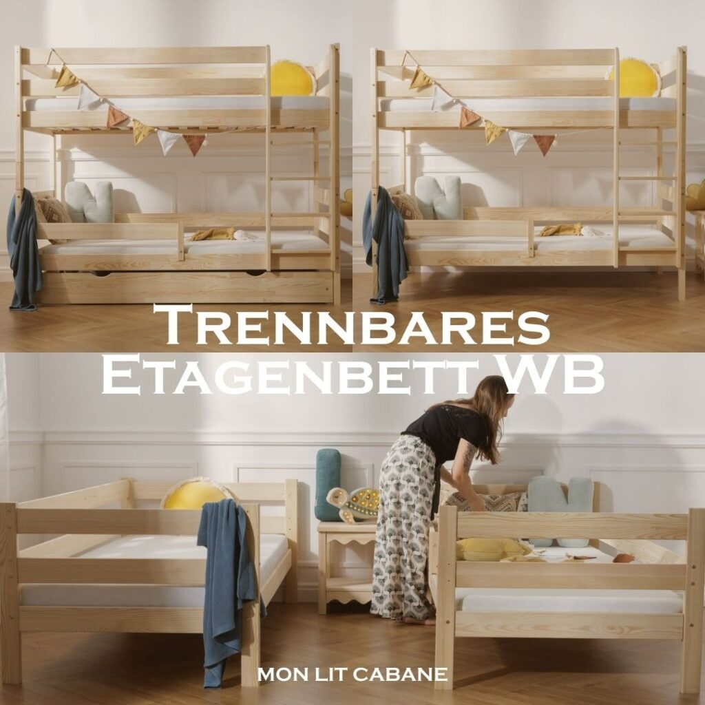 - Etagenbett WB Premium: Dieses Etagenbett kann später nach Wunsch und den Bedürfnissen Ihres Kindes in zwei Einzelbetten geteilt werden. Erhältlich in 80×160 cm, 80×180 cm, 80×190 cm, 90×160 cm, 90×180 cm, 90×190 cm und 90×200 cm.