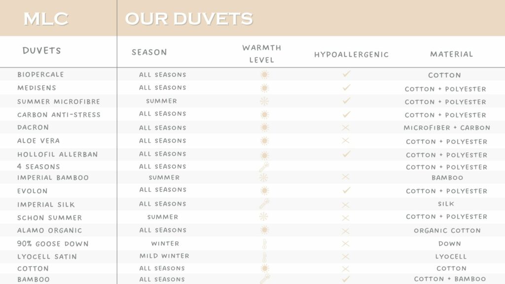 Four Seasons Duvet: ideal for those wanting a single duvet suitable for year-round use, regardless of temperature.