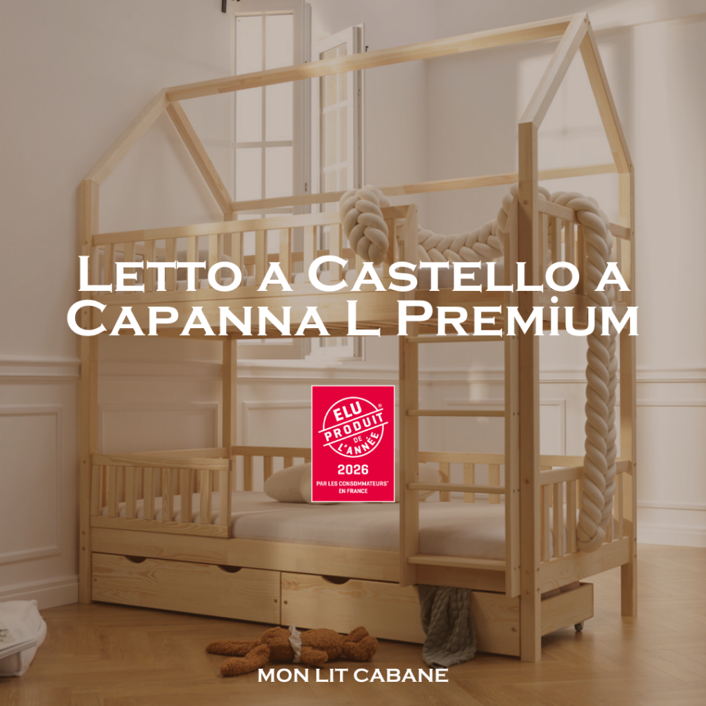- Letto a castello L Premium: disponibile in 90×190 cm a terra o a 20 cm.