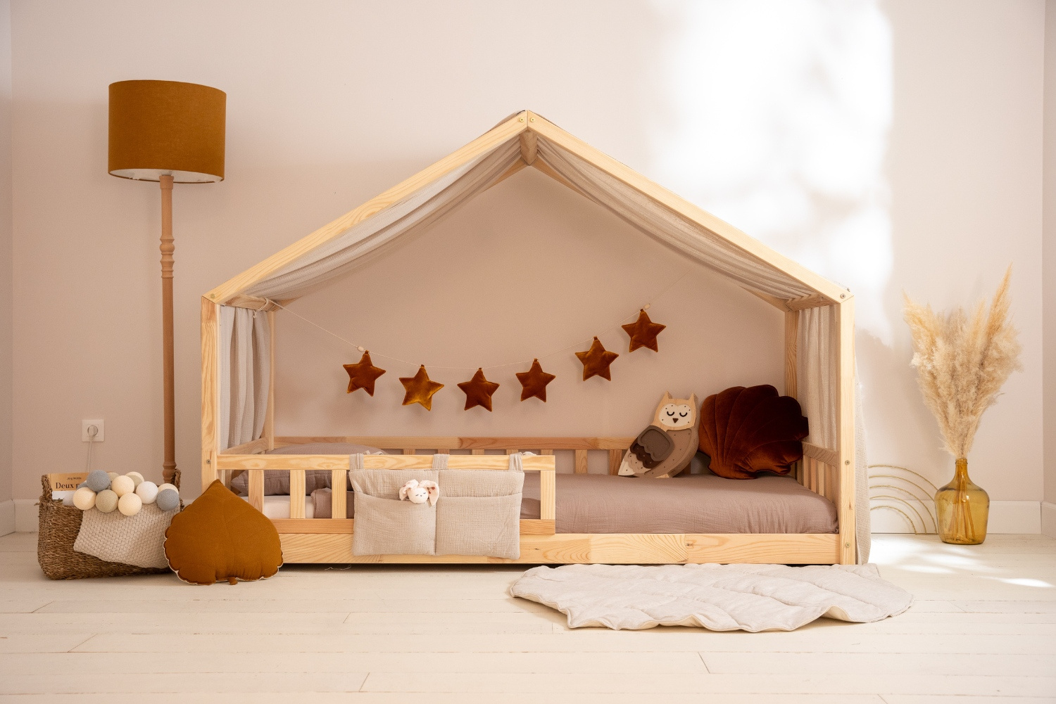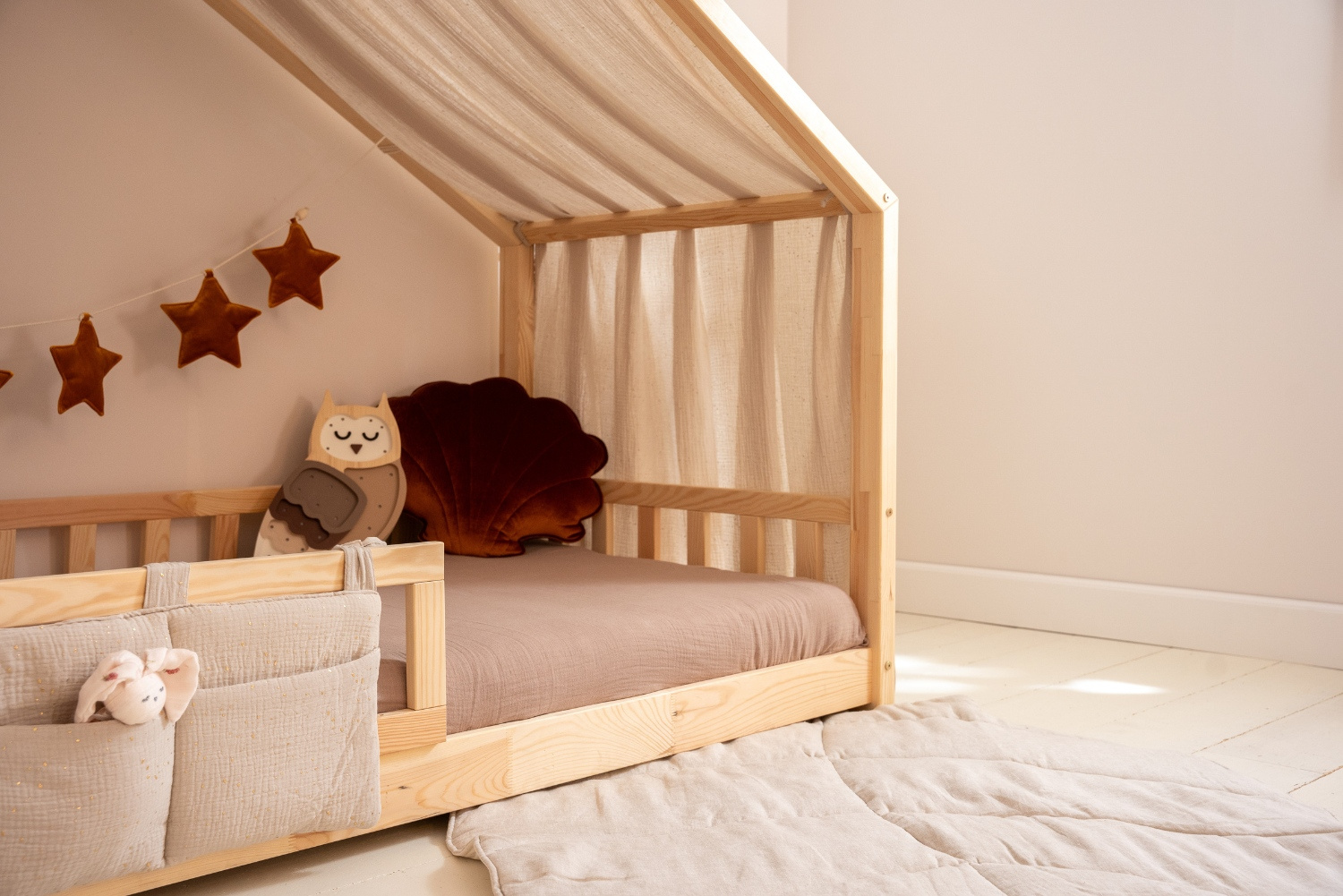 Unsere Aufbewahrungstaschen werden aus demselben Stoff wie unsere Hausbett - Himmel hergestellt, sodass Sie sie aufeinander abstimmen und so ein perfektes Ganzes schaffen können.