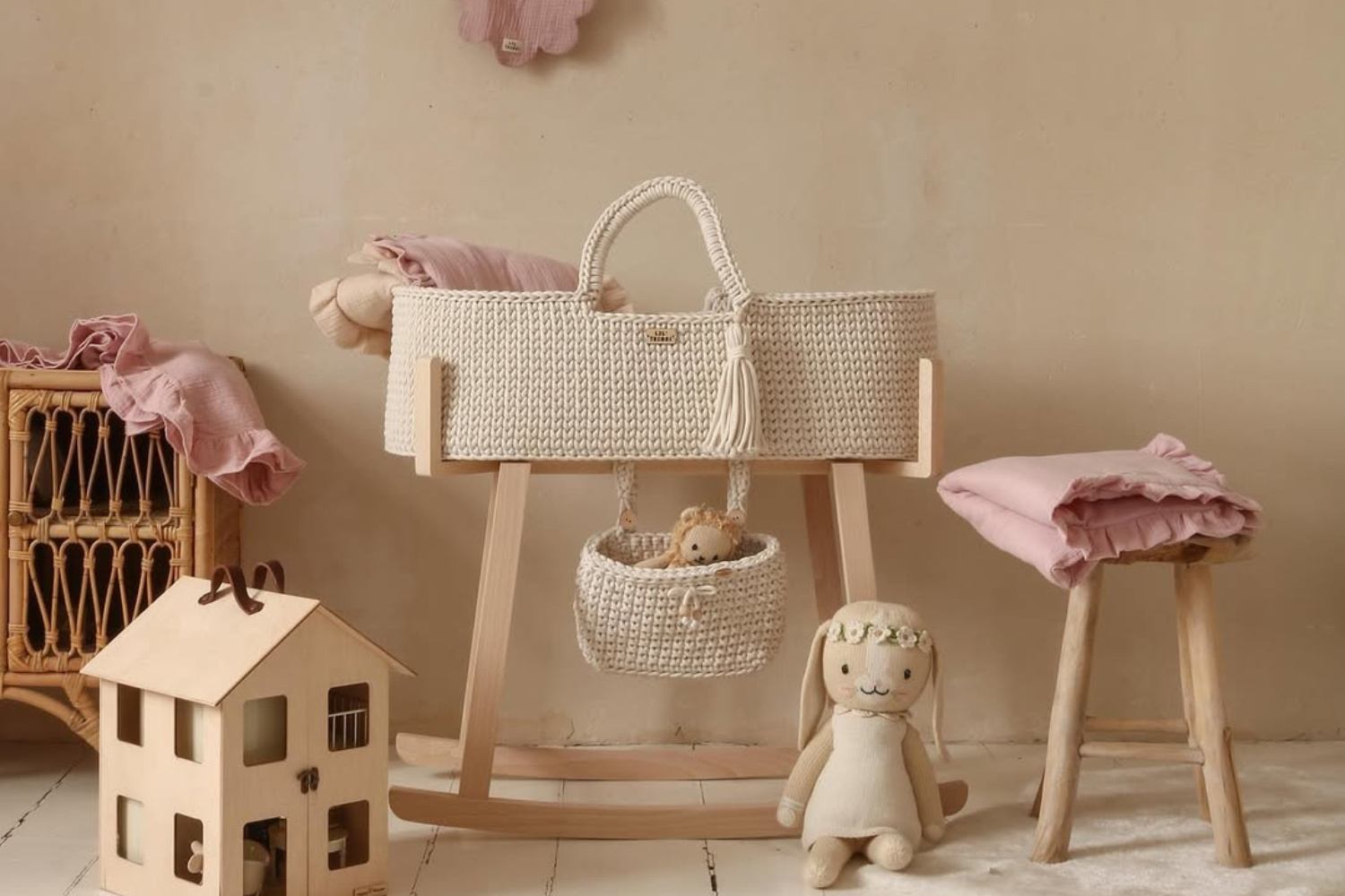 Handgefertigtes, ästhetisches Bettchen, das Eltern das Leben leichter macht.