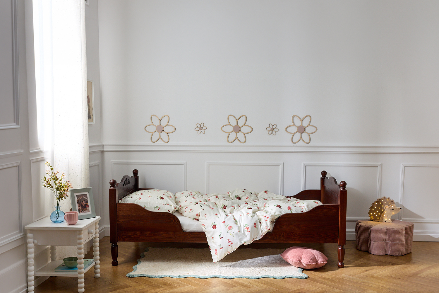 Ein charmantes und originales Bett für ein Kinderzimmer. Sein Retro-Vintage-Stil ist in letzter Zeit sehr beliebt. Für die Sicherheit konzipiert, ist es mit schützenden Seiten ausgestattet, die Stürze verhindern, ohne dass ein zusätzlicher Rausfallschutz erforderlich ist.