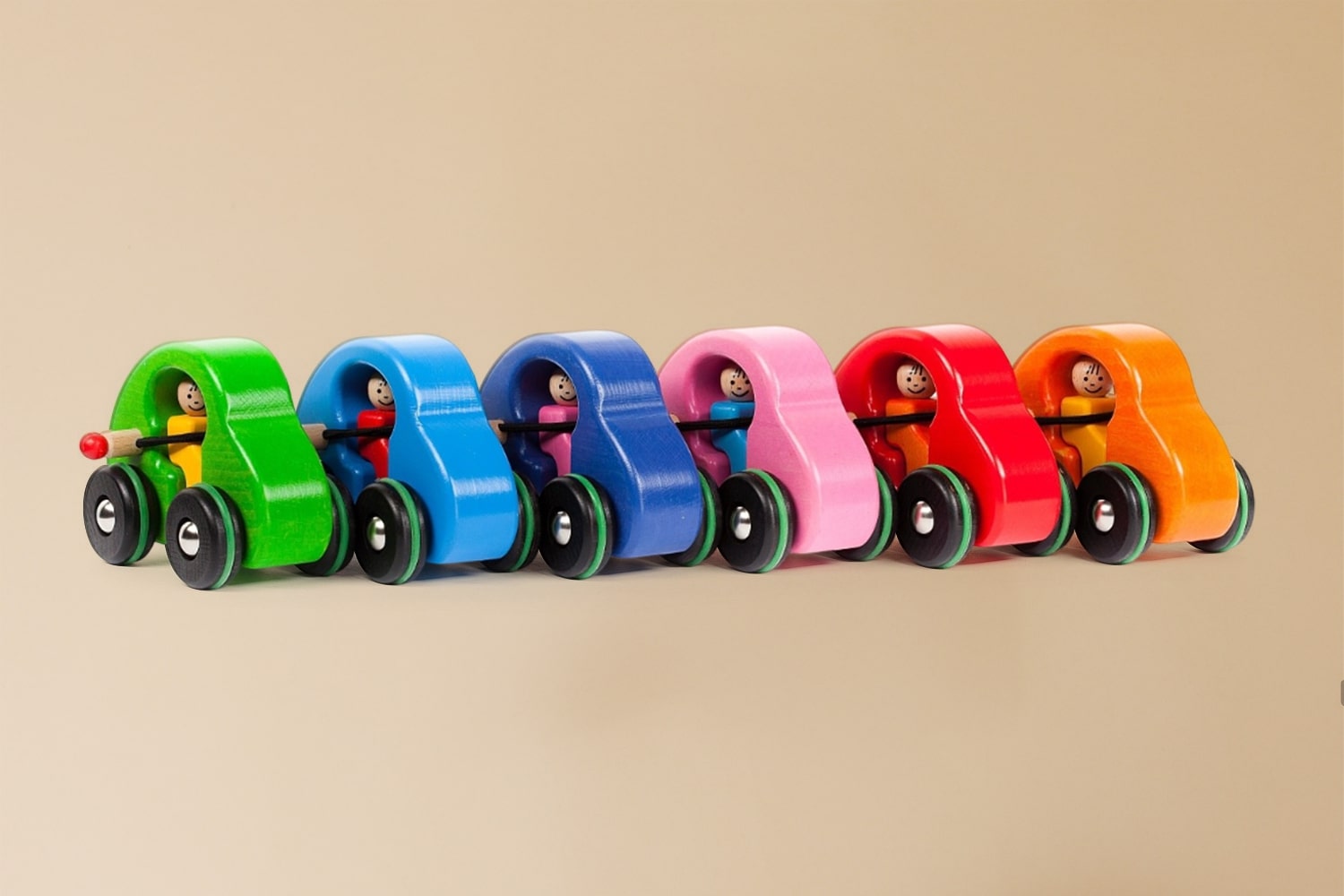 Holzspielzeug ist ein natürliches Element und ungefährlich für Kinder. Die verwendeten Farben sowie andere Bestandteile sind alle getest und zertifiziert.