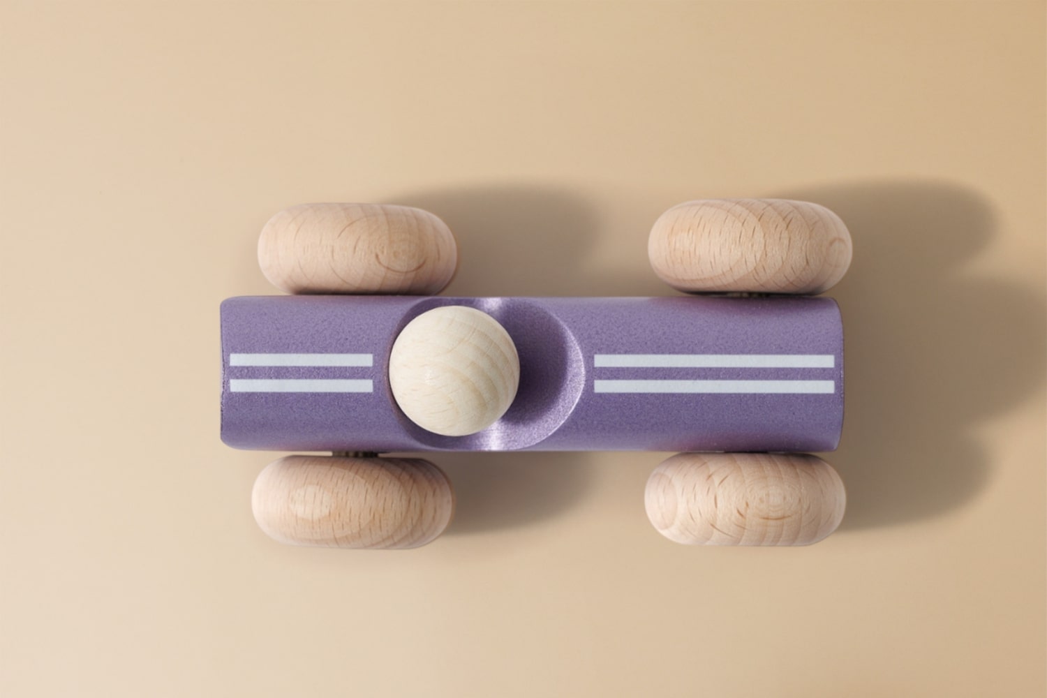Das Auto hat unlackierte Elemente, was den Werten unseres Unternehmens entspricht, das dafür sorgt, dass jedes Spielzeug ein natürliches Element aus Holz hat und nicht lackiert ist.