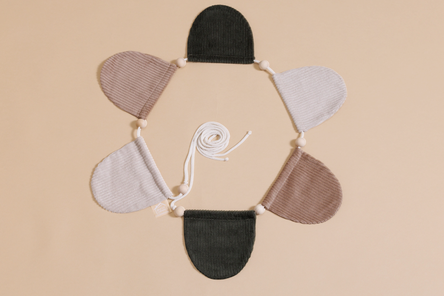 Girlanden Halbkreise aus Cord Cappuccino und Tannengrün