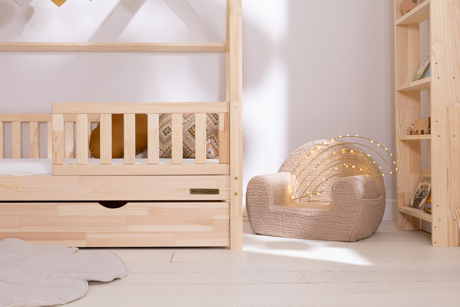Alle unsere Betten sind kinderfreundlich angefertigt aus unbehandeltem Kiefernholz und mit abgerundeten Konturen.