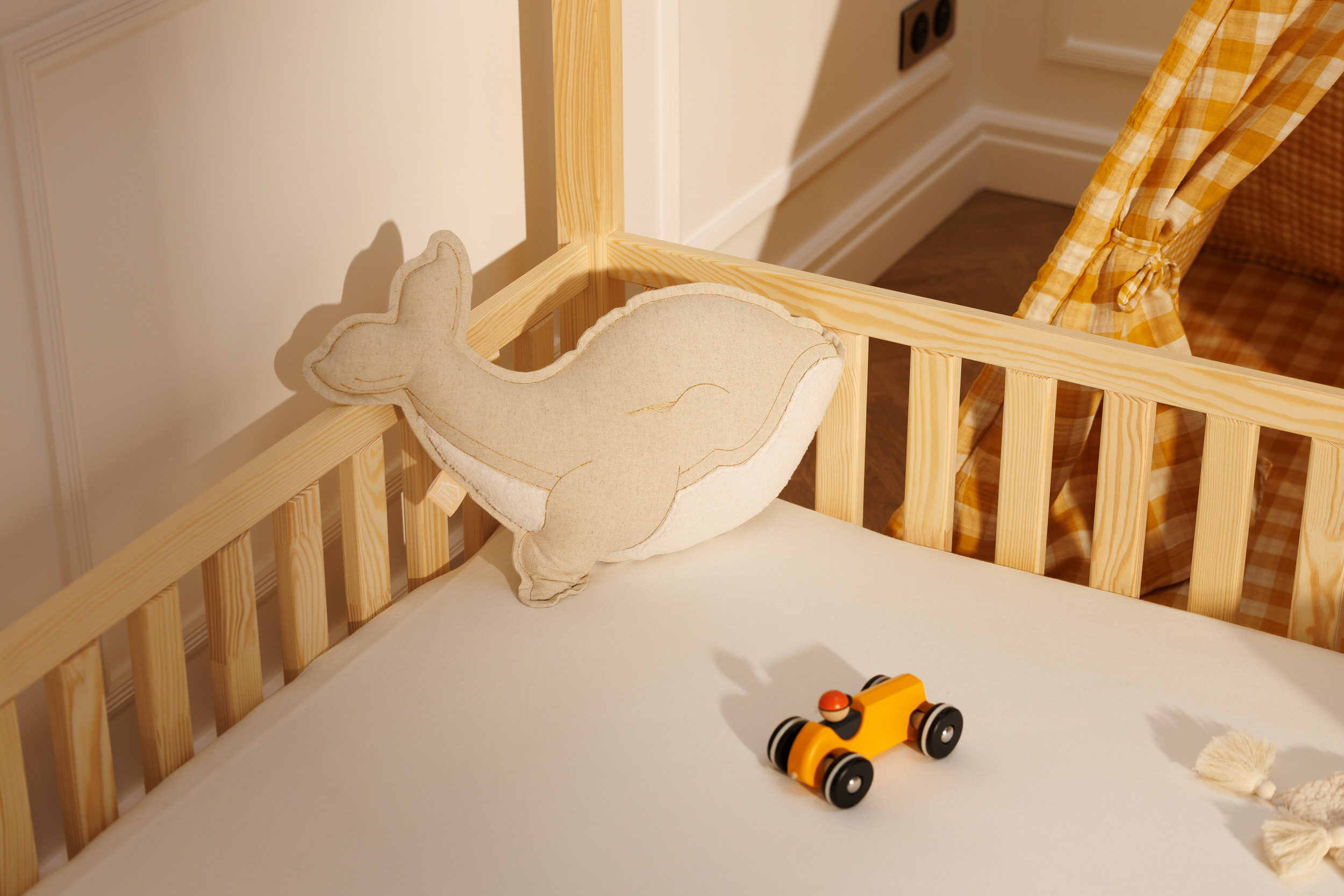 Unser wunderschönes Leinenkissen in Walform ist eine Dekoration, die jedes Kind lieben wird.