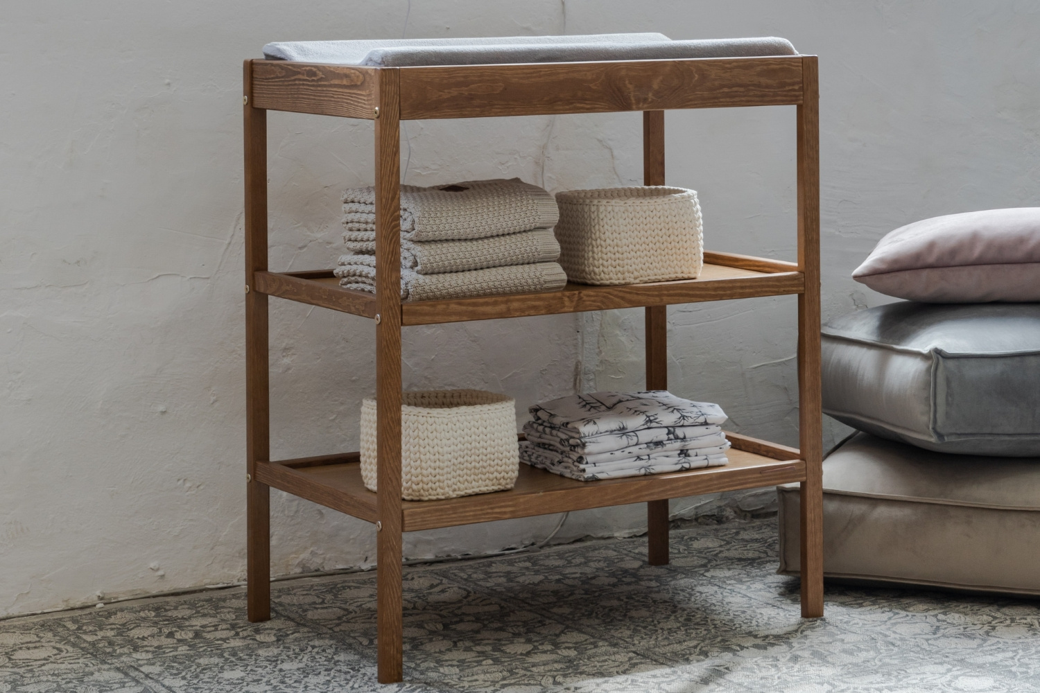 Durch das leichte und einfache Design des Wickeltisches passt er in jede Einrichtung und seine durchbrochene Konstruktion dominiert den Raum nicht.