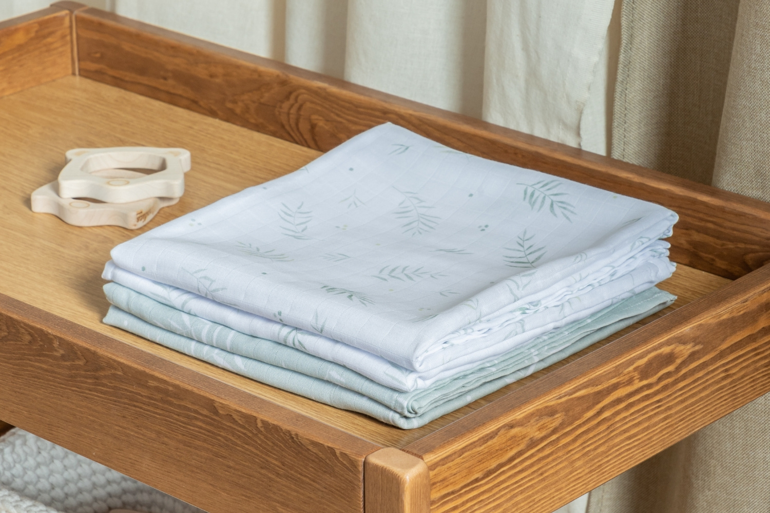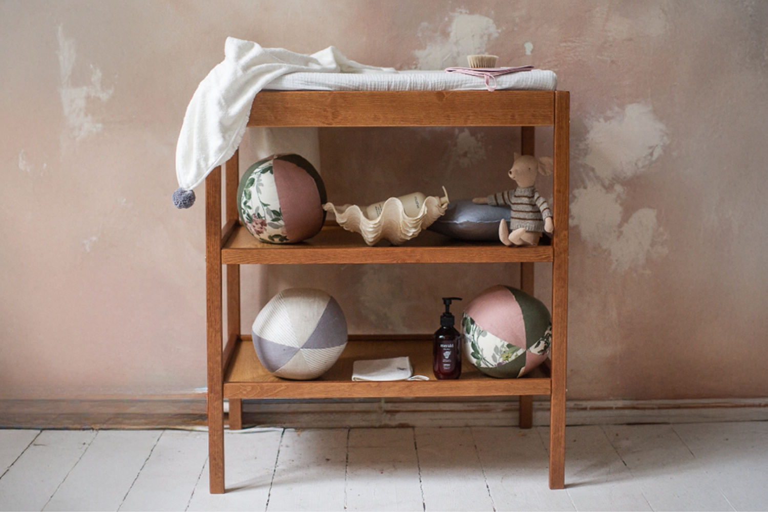 Die obere Ablage wird zum Wickeln verwendet und die unteren Regale enthalten alle wichtigen Produkte, die ein Kind braucht. Die Regale des Wickeltisches befinden sich in der optimalen Höhe, um Windeln, Schlummern und Spielzeug zu verstauen, ohne sich unnötig zu bücken.