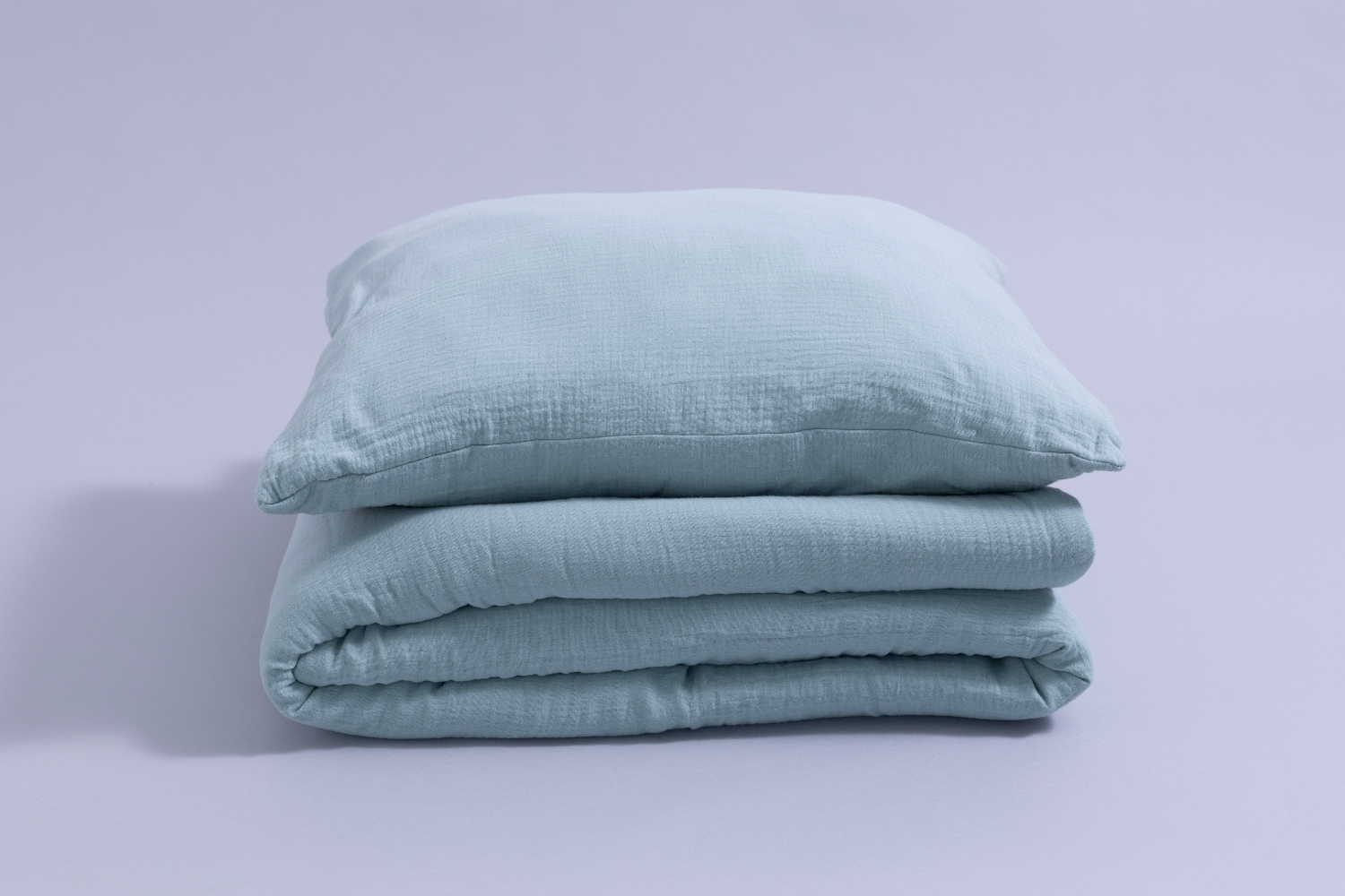 Baumwoll-Musselin 120x170 Bettdecke & Kissen Set - Salbeigrün