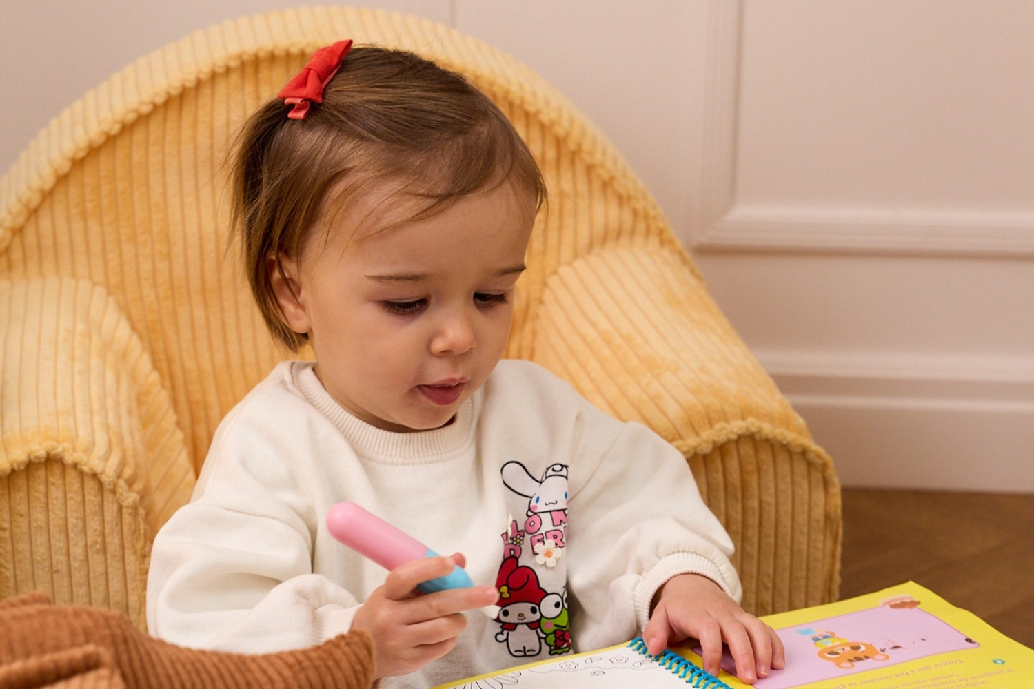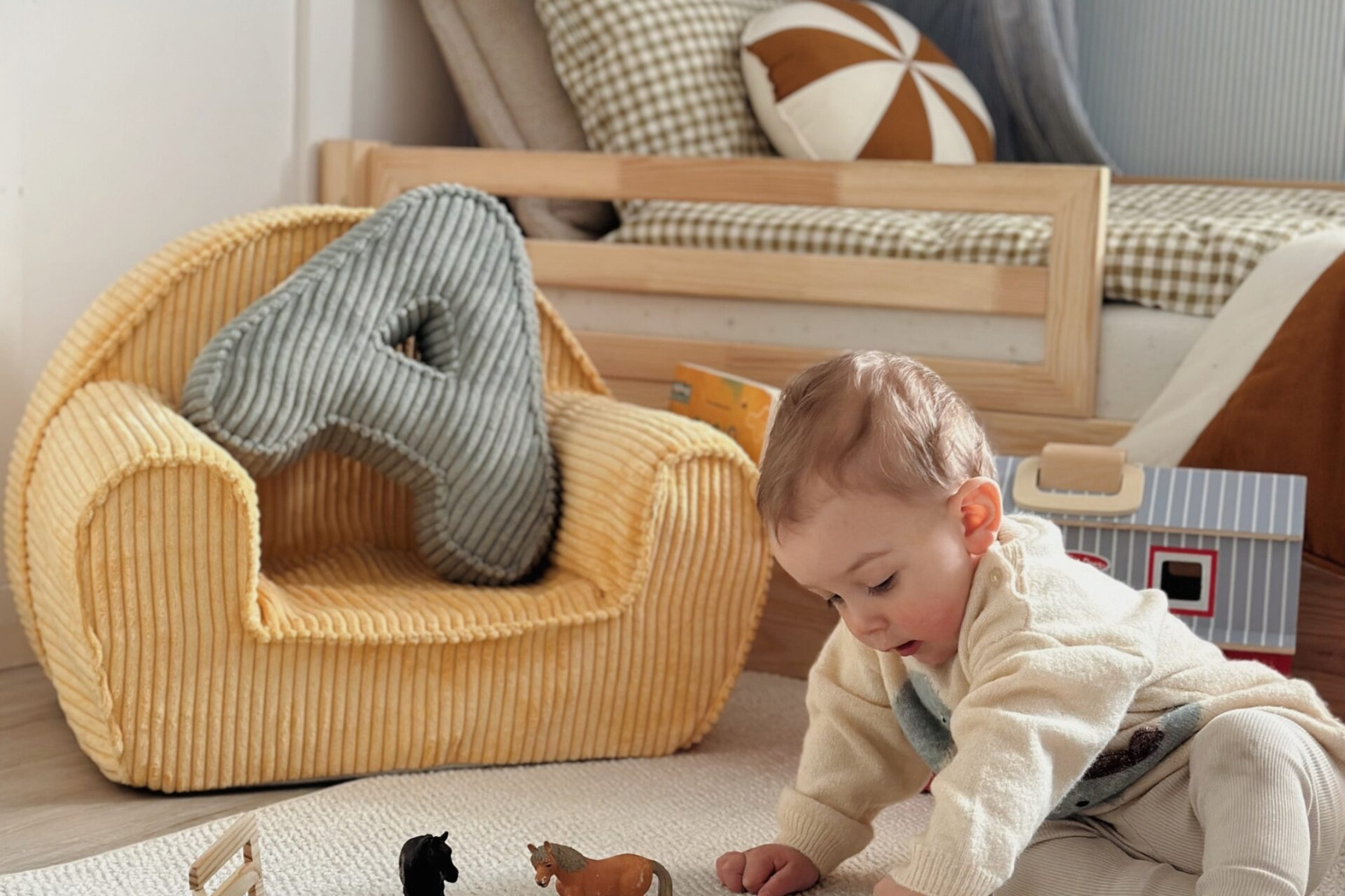 Dieses Produkt ist aus hochwertigem, weichem Cord gefertigt, der seinem kleinen Besitzer durch seine Textur ein unvergessliches haptisches Erlebnis bietet. In der Seitentasche können kleine Spielsachen und Bücher aufbewahrt werden.