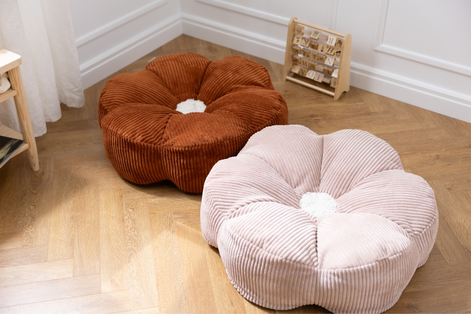Wir präsentieren den Cord-Samt Blumen Pouf – die perfekte Kombination aus Komfort und Stil!