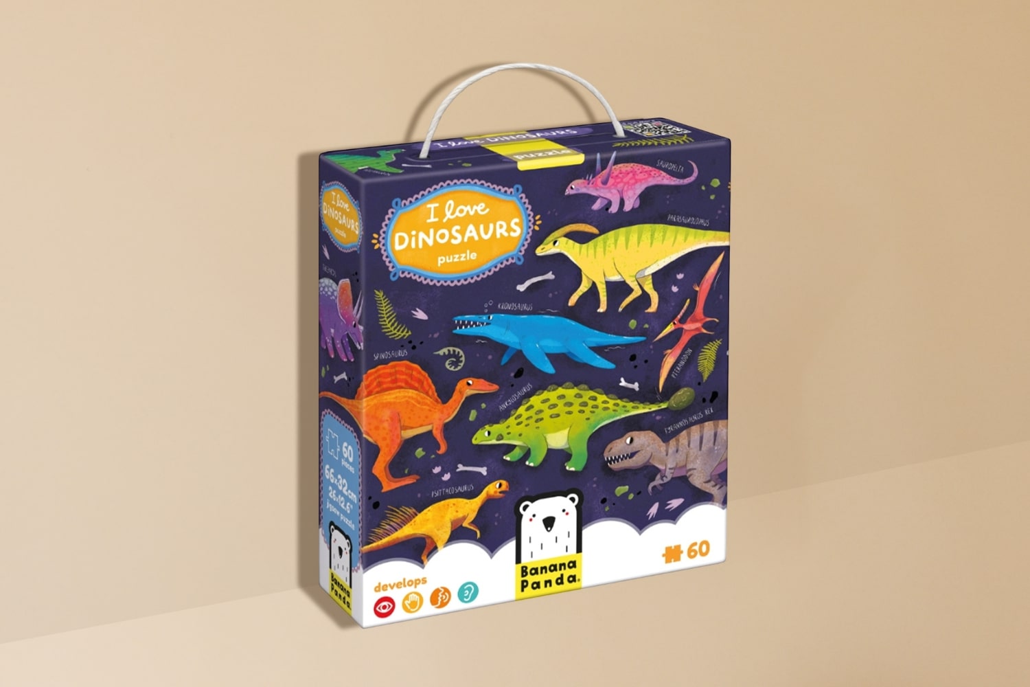 14 verspielte Dinosaurier und andere prähistorische Reptilien laden dich zu einem lustigen Abenteuer ein, das deine Beobachtungsgabe, deine Feinmotorik und deine Fantasie fördert. Die großen, farbenprächtigen Puzzles bestehen aus 60 Elementen. Die zusammengesetzte Illustration regt zu vielen kreativen Aktivitäten an. Dies ist ein Muss im Regal kreativer Träumer.