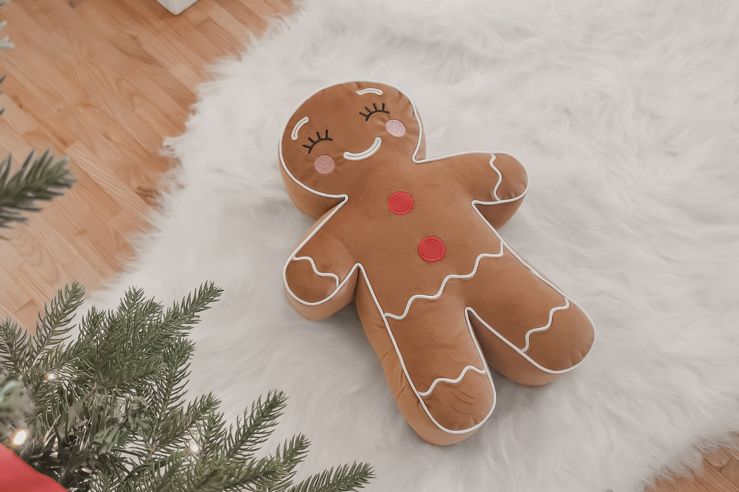 Mit weißem Garn bestickt und mit weißem Rand versehen, erinnert es an Lebkuchen, die mit Zuckerguss dekoriert sind. Ideal für das Wohnzimmer, Schlafzimmer oder eine Leseecke, sorgt es für eine gemütliche und magische Weihnachtsstimmung.