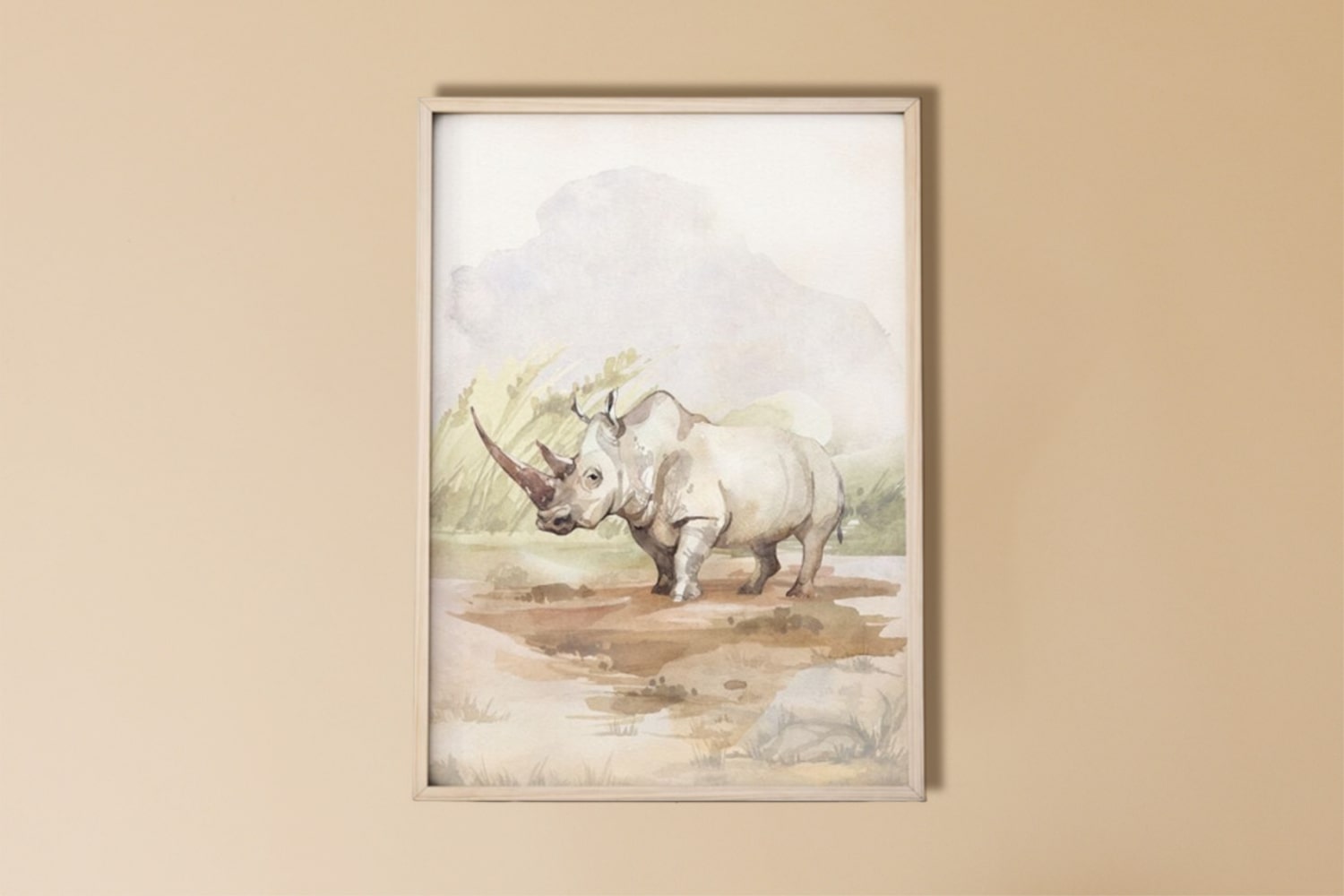 Dekorieren Sie das Zimmer Ihres Kindes mit diesem hübschen Bild eines Nashorns.