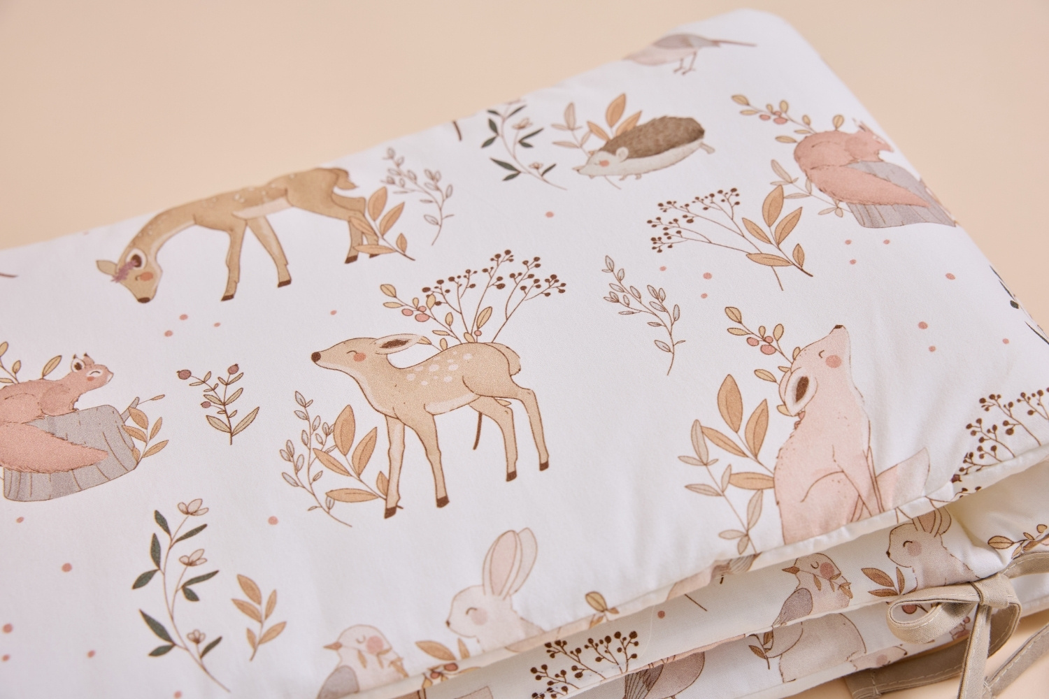 Our baby bed bumpers are sewn from 100% cotton, combed fabric with a weight of 150 g/m². It is a soft material, gentle on your child’s sensitive skin, yet durable and resistant to everyday use.