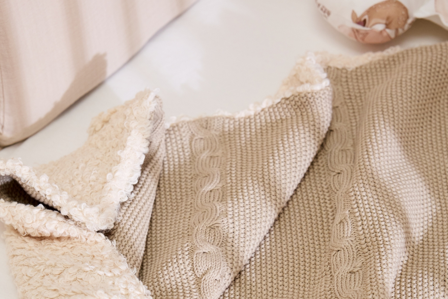 A universal design for boys and girls - our blanket fits into any interior style. Its soft pastel colours and sheepskin pattern will make it suitable for both boys and girls.