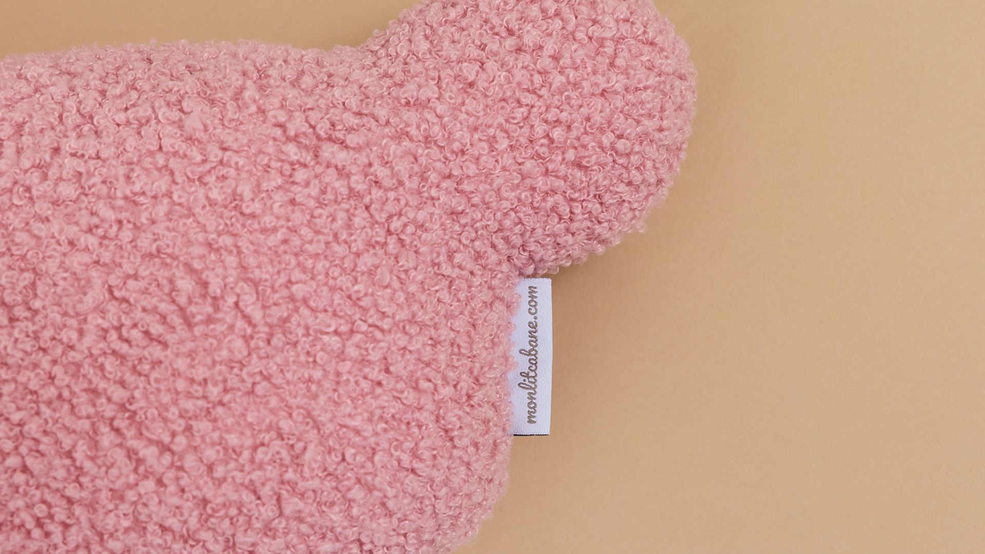 Handmade, knitted bouclé fabric with a lambskin-like feel, 100% polyester and Oeko-Tex 100 certified.