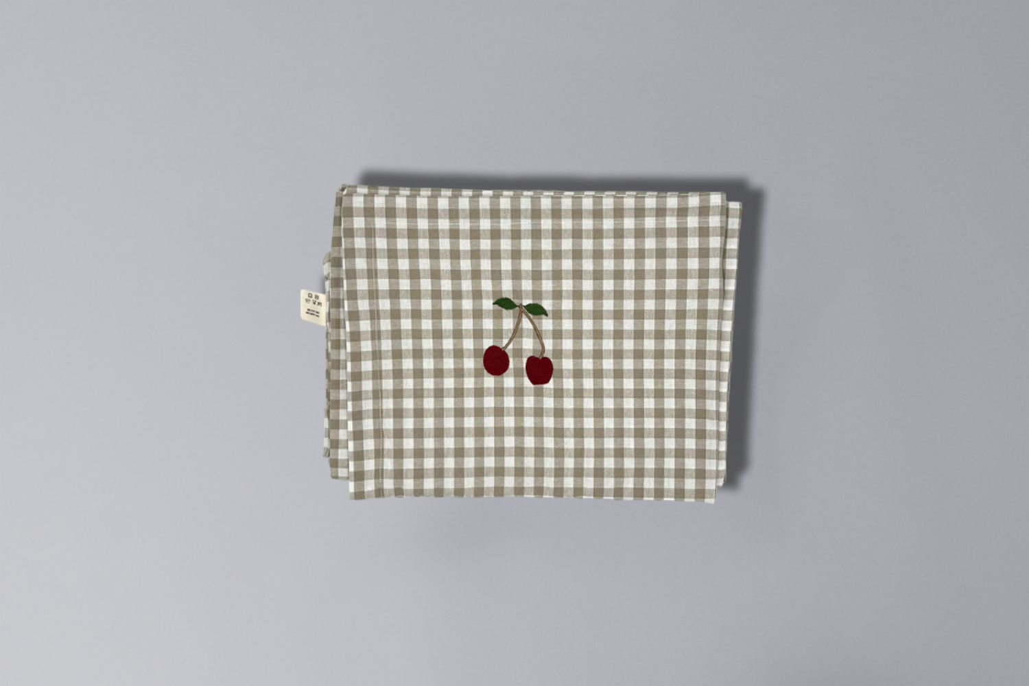 Our charming chequered cotton bedding set for children, featuring a delicate cherry embroidery is made of the highest quality cotton.