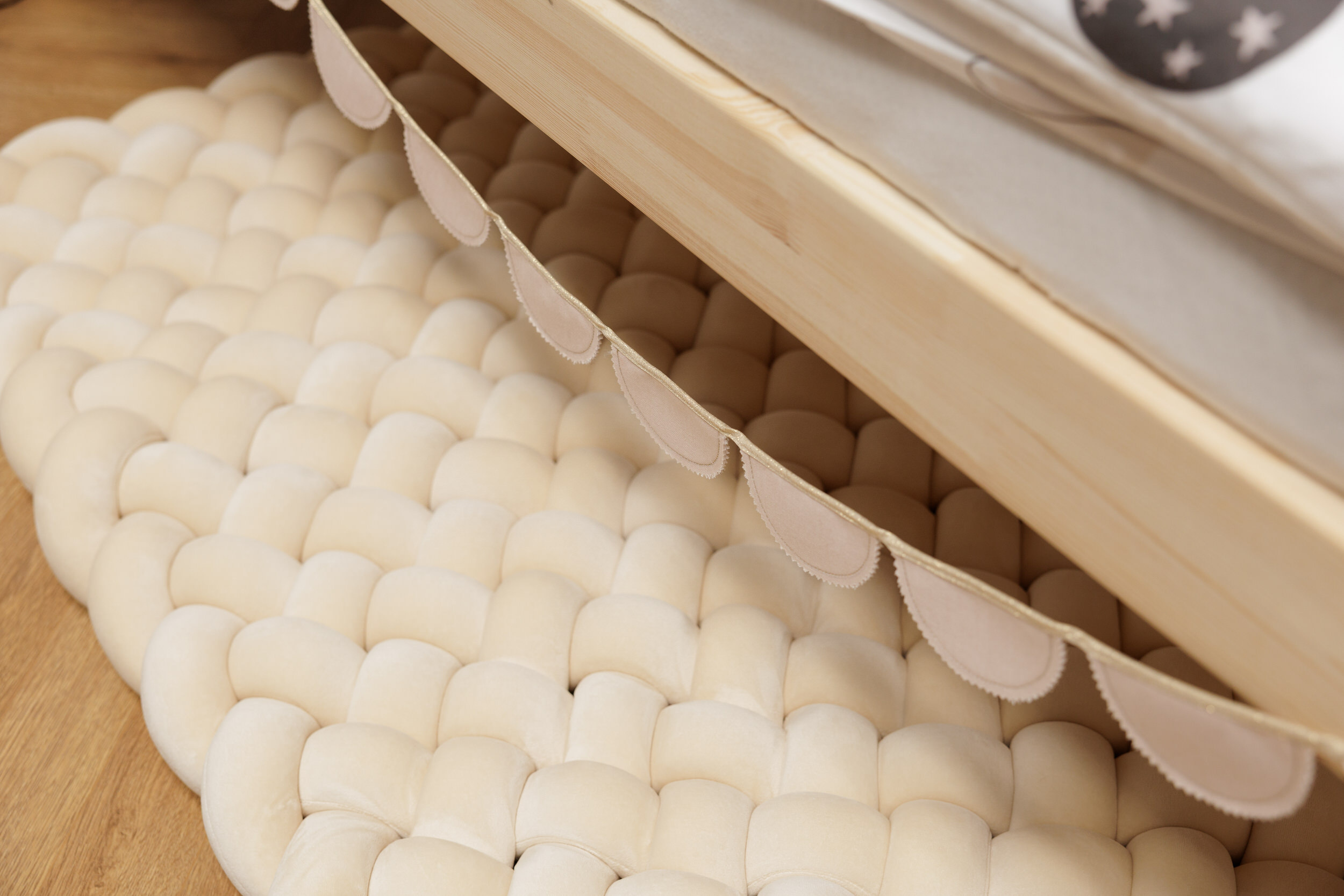 The garland finished with a shimmering ribbon, is a beautiful decoration for a child's room.