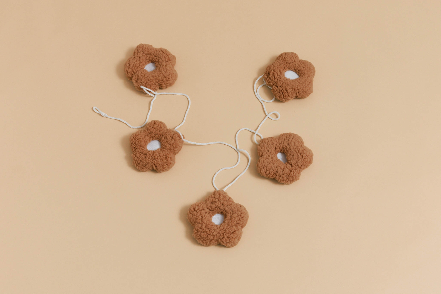 The garland features five carefully handcrafted daisies, evenly spaced along a 2.6-meter-long string.