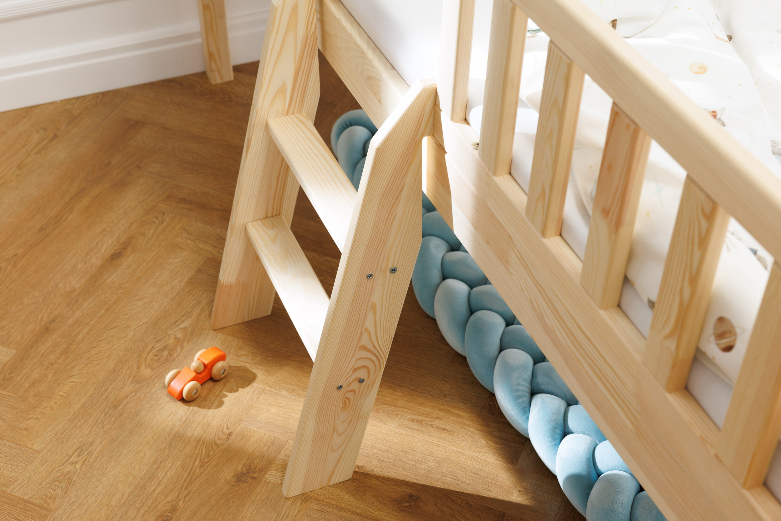All our beds are made of pine, untreated. The edges are rounded.