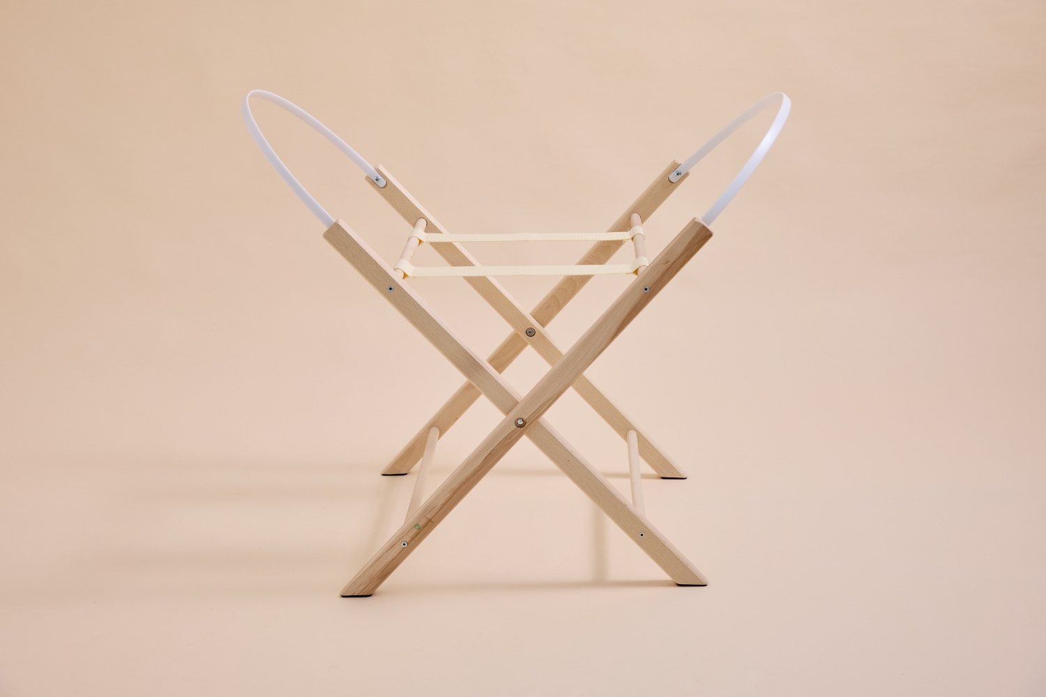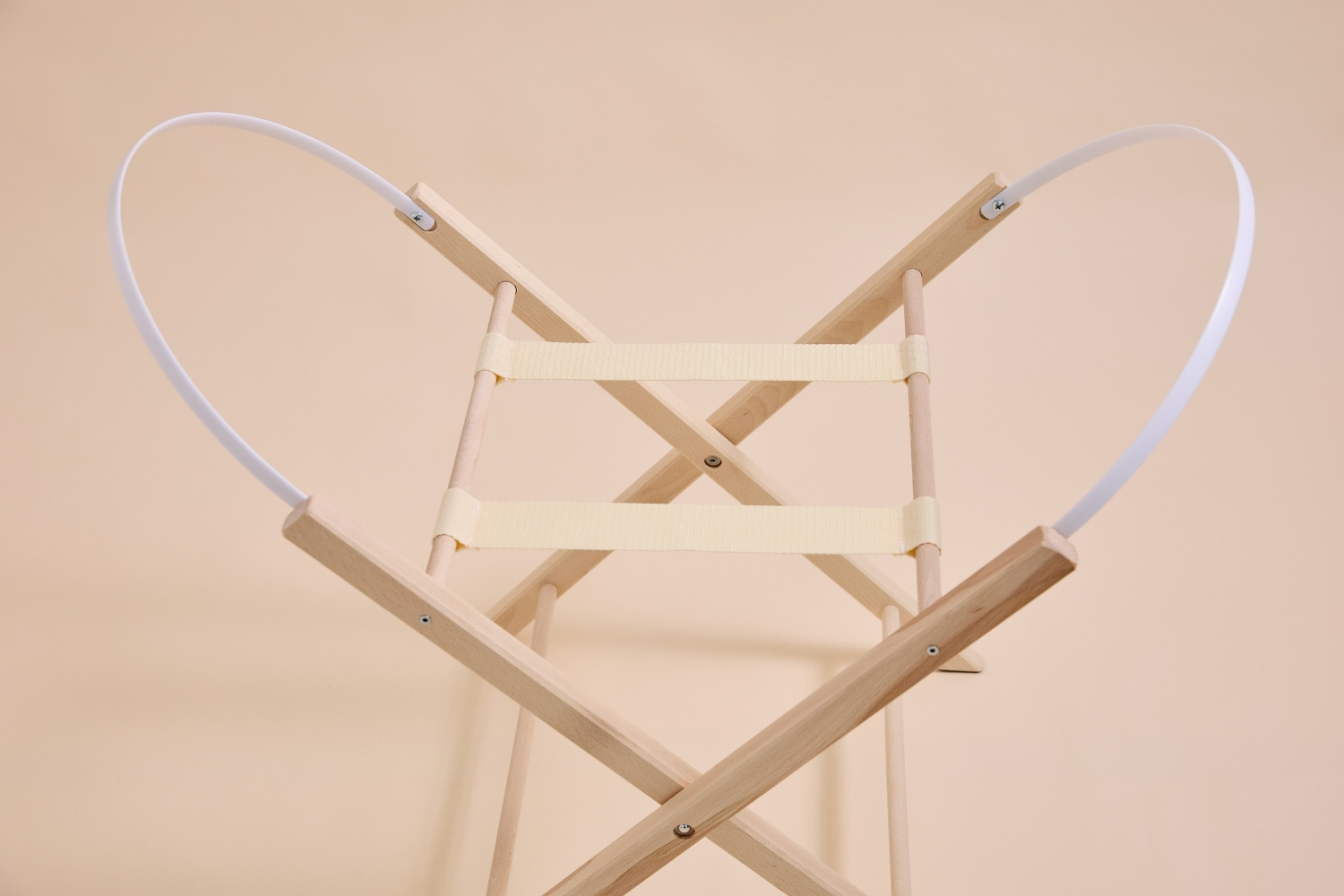 The fixed support is designed for Moses baskets. It is lightweight and, once folded, takes up little space. The support is made of solid beech wood. Additionally, its construction is reinforced with strong straps.
