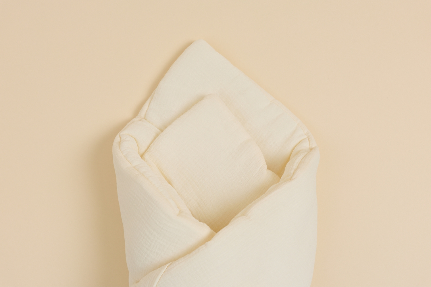 It is always recommended to wash on a gentle cycle at 30°C using mild detergents. To maintain product quality, avoid tumble drying. The swaddle can be lightly ironed, but be careful with high temperatures to prevent damage to the filling.