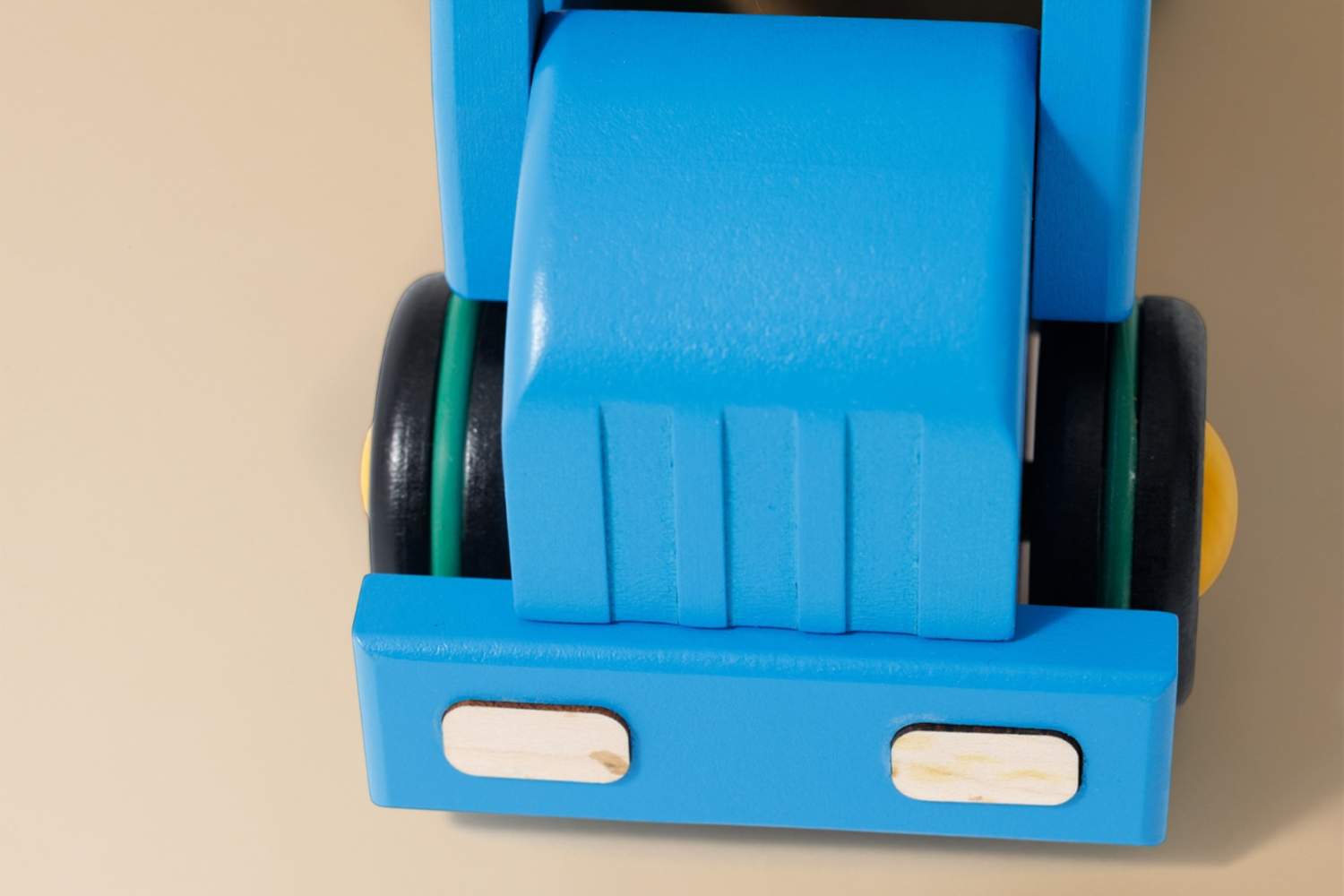 The truck has unpainted elements in accordance with the values of our company, which ensures that each toy has a natural element made of wood and not painted.