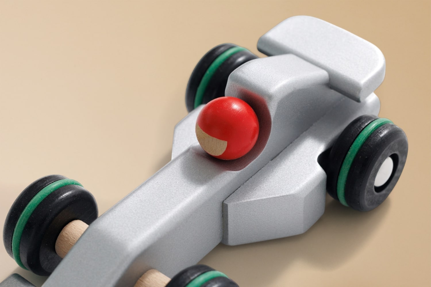 The car has unpainted elements in accordance with the values of our company, which ensures that each toy has a natural element made of wood and not painted.