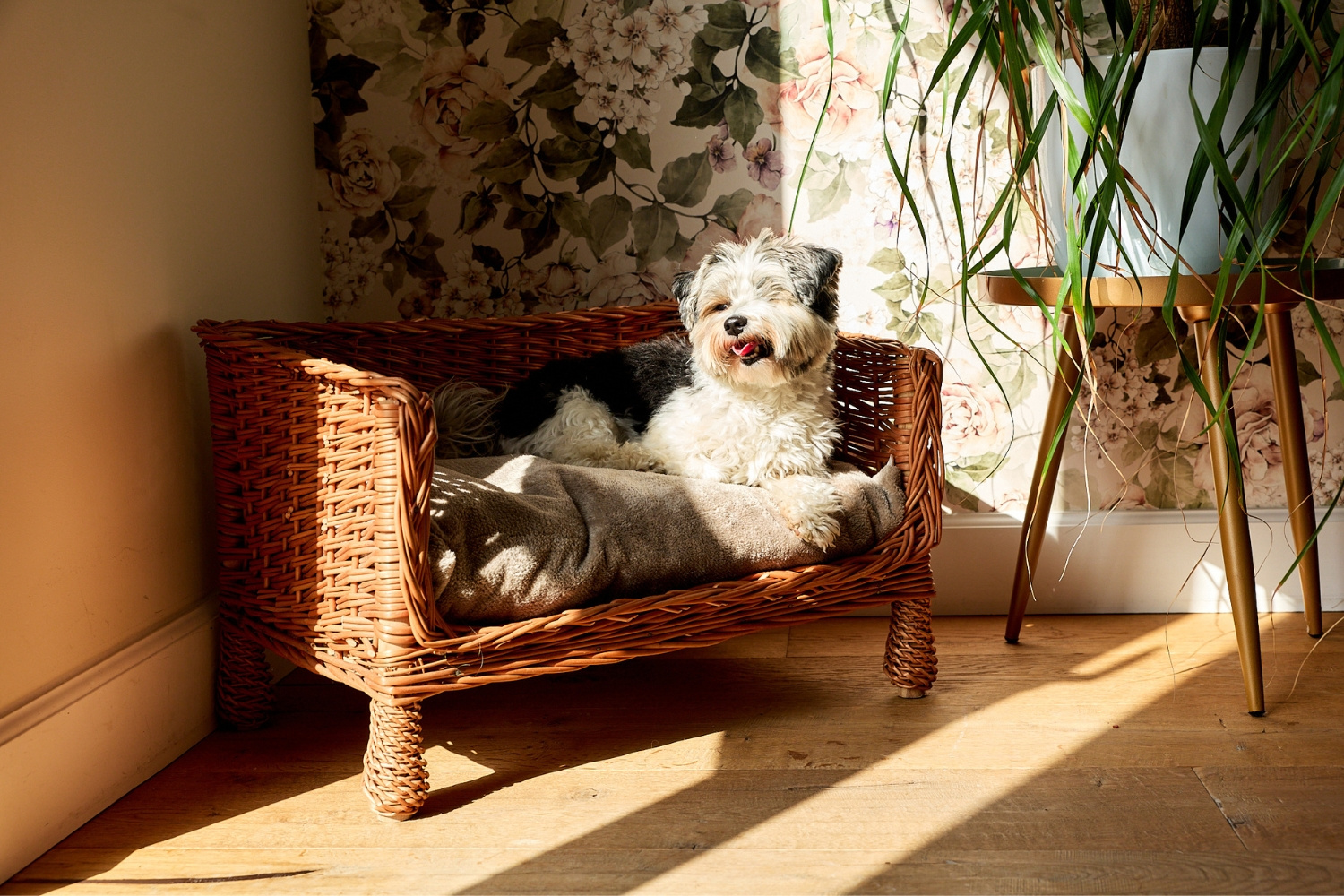 Un capullo de comodidad para tu mascota. Este sillón de mimbre para tu perro combina diseño y confort.