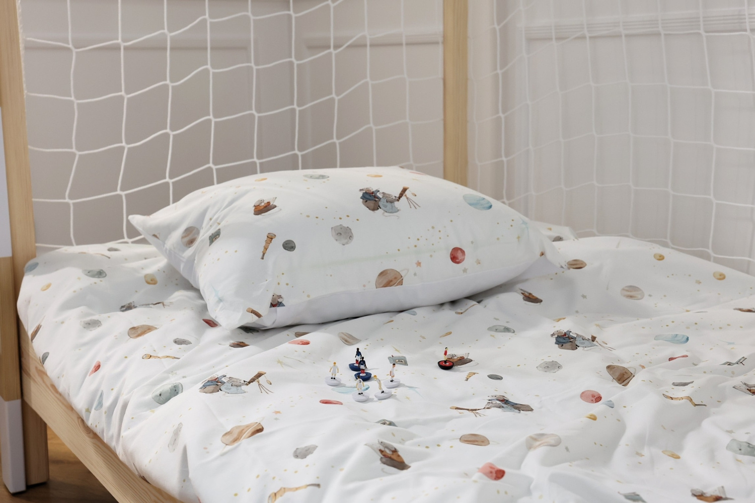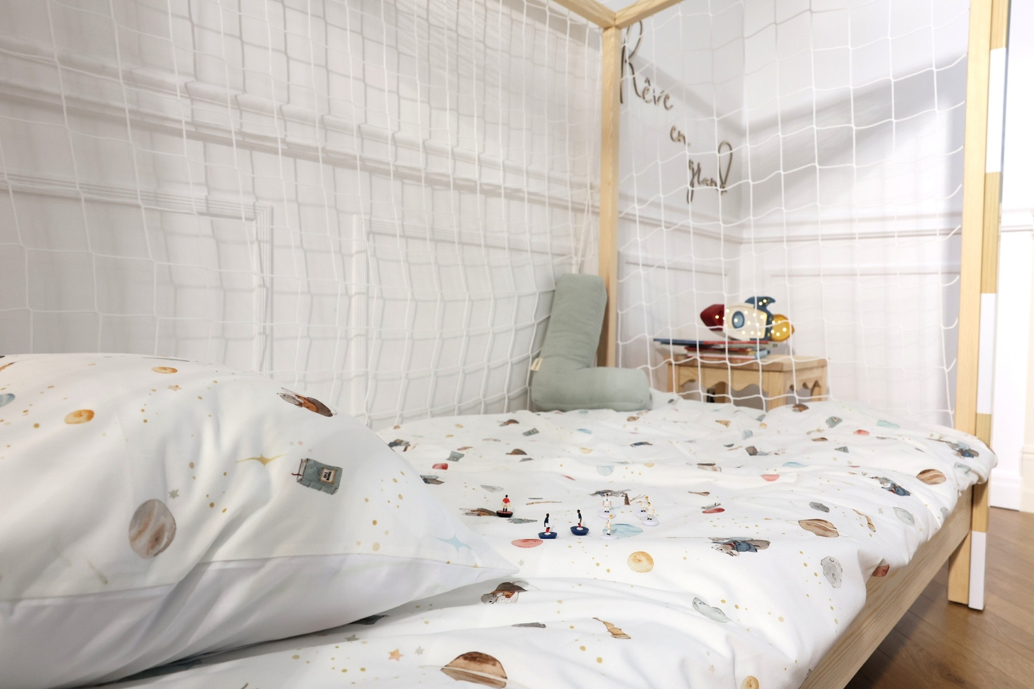 Personalizable bajo pedido después de la compra, puede realizarse en los colores preferidos de tu hijo para crear un universo único, a su medida. Esta personalización convierte cada cama en una pieza exclusiva que estimula la imaginación y alimenta la pasión por el fútbol.