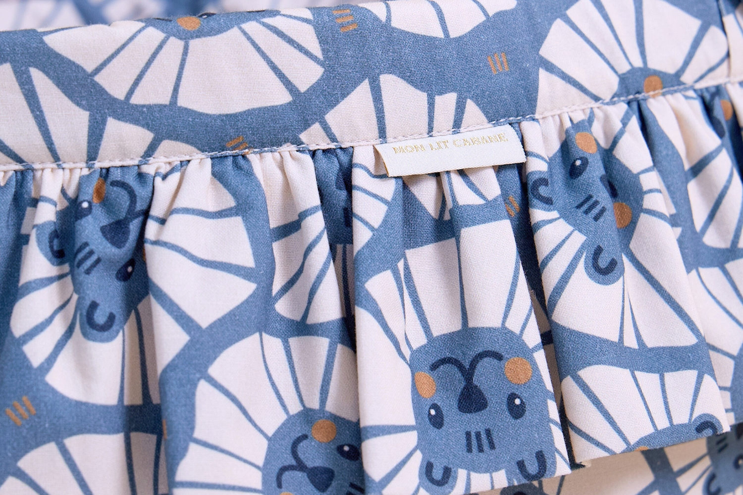 Hecha de algodón de alta calidad certificado OEKO-TEX® Standard 100, garantiza seguridad y suavidad para las manos pequeñas. El tejido lleva nuestro estampado exclusivo y original, haciendo de cada cesta una pieza única.