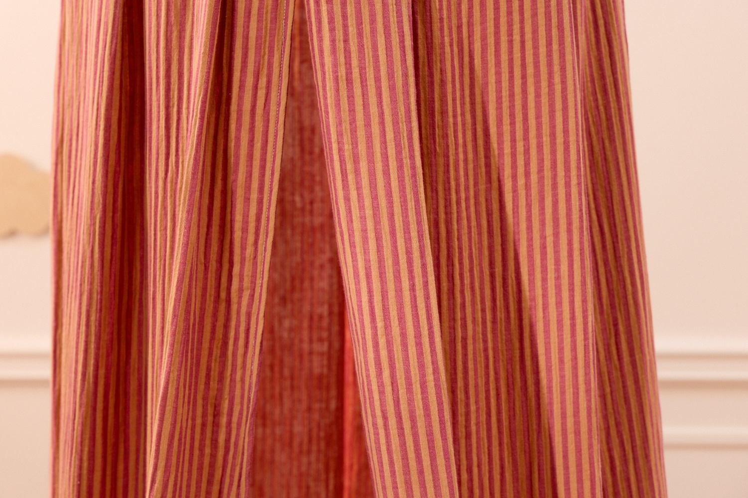 Puede colgarse de un gancho de techo (no incluido) o de un soporte especial. Crea un espacio tranquilo y cerrado sobre la cama del niño, proporcionándole un lugar seguro para descansar.