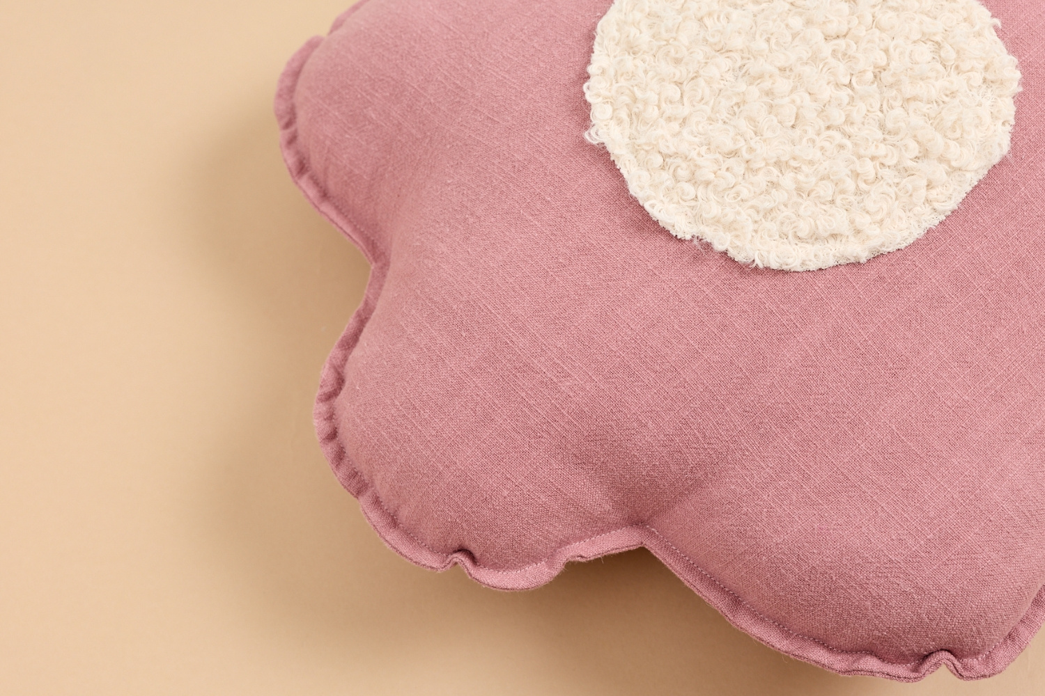 El cojín es 100 % de lino, con propiedades antibacterianas, antifúngicas y antialérgicas, y cuenta con certificación Oeko-Tex.