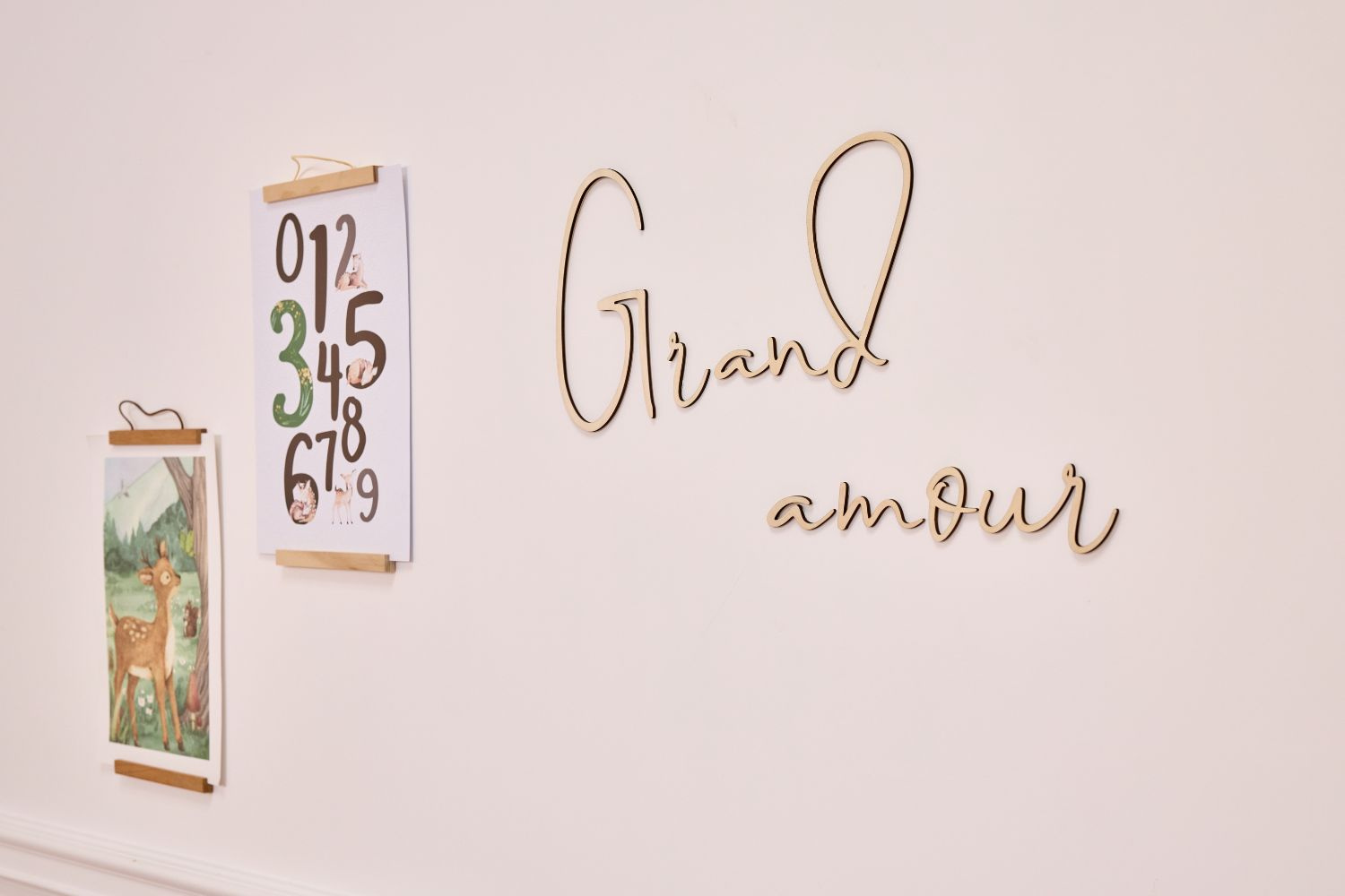 La inscripción de madera será una magnífica decoración para la habitación de tu hijo. Su sencillez y universalidad la hacen adecuada para cualquier interior.