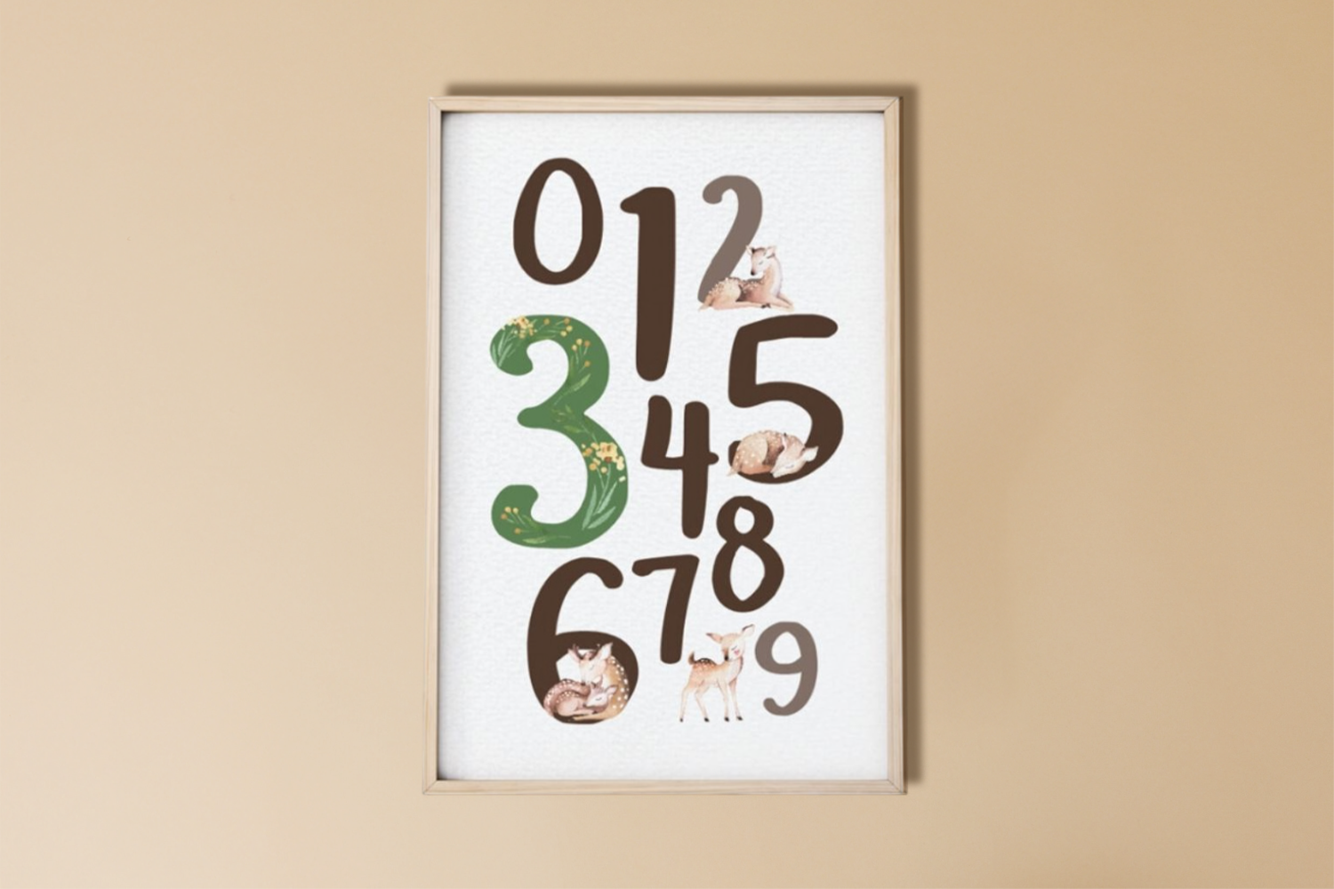 Decora la habitación de su hijo/a gracias a esta preciosa imagen de números y cervatillos!