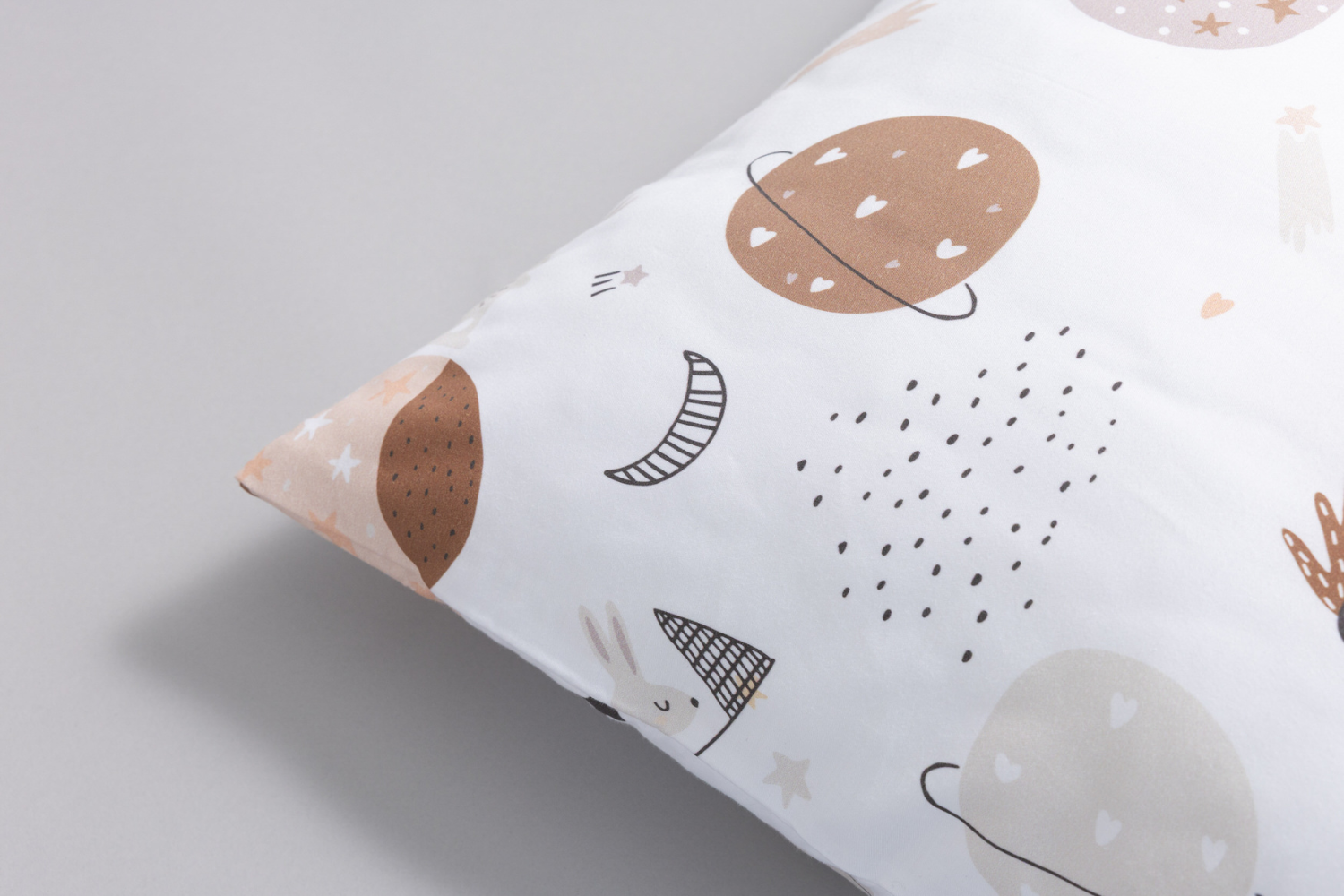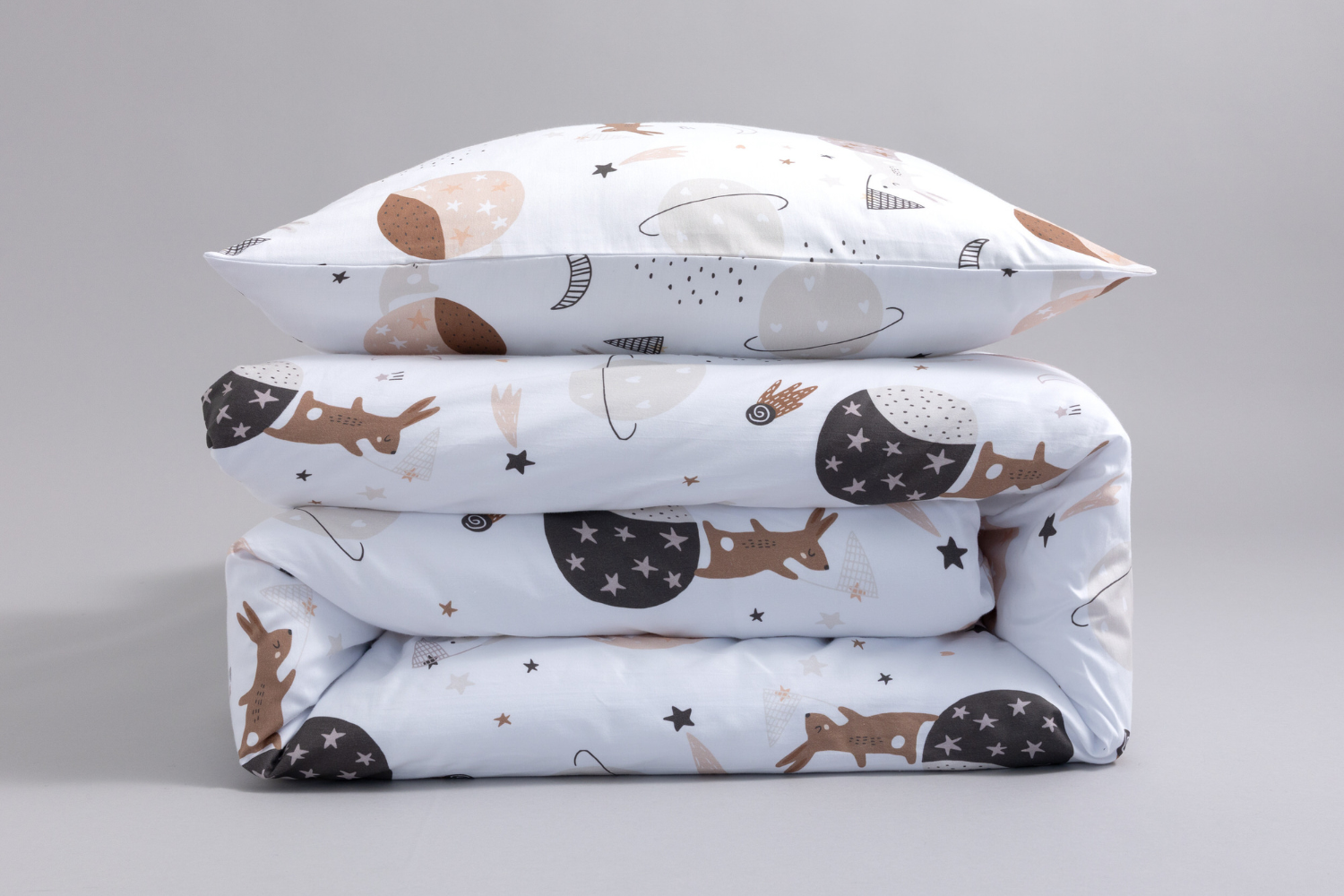 El juego consiste en una funda de almohada de 60x60cm y una funda de edredón de 120x170cm.