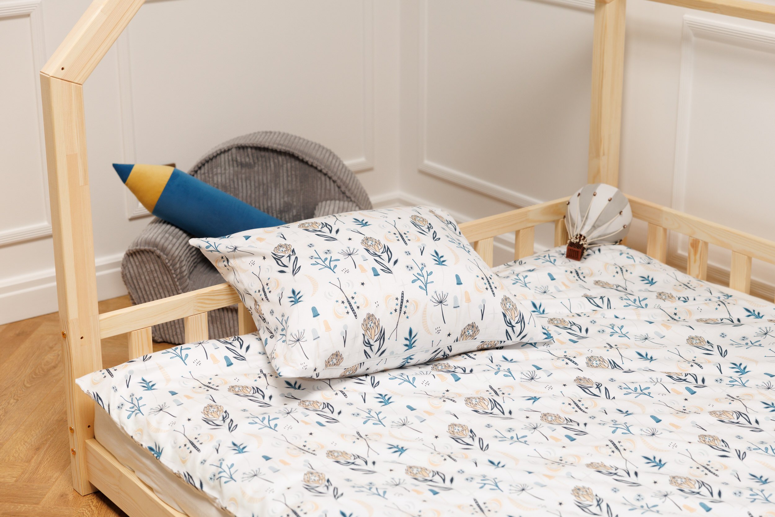El juego consiste en una funda de almohada de 60x60cm y una funda de edredón de 120x170cm.