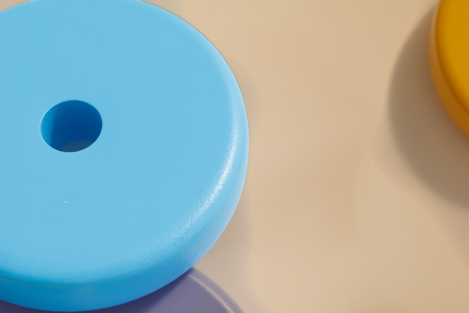 Seis tamaños diferentes de figuras crean una amplia gama de juegos diferentes. Se pueden colocar desde el más grande hasta el más pequeño.