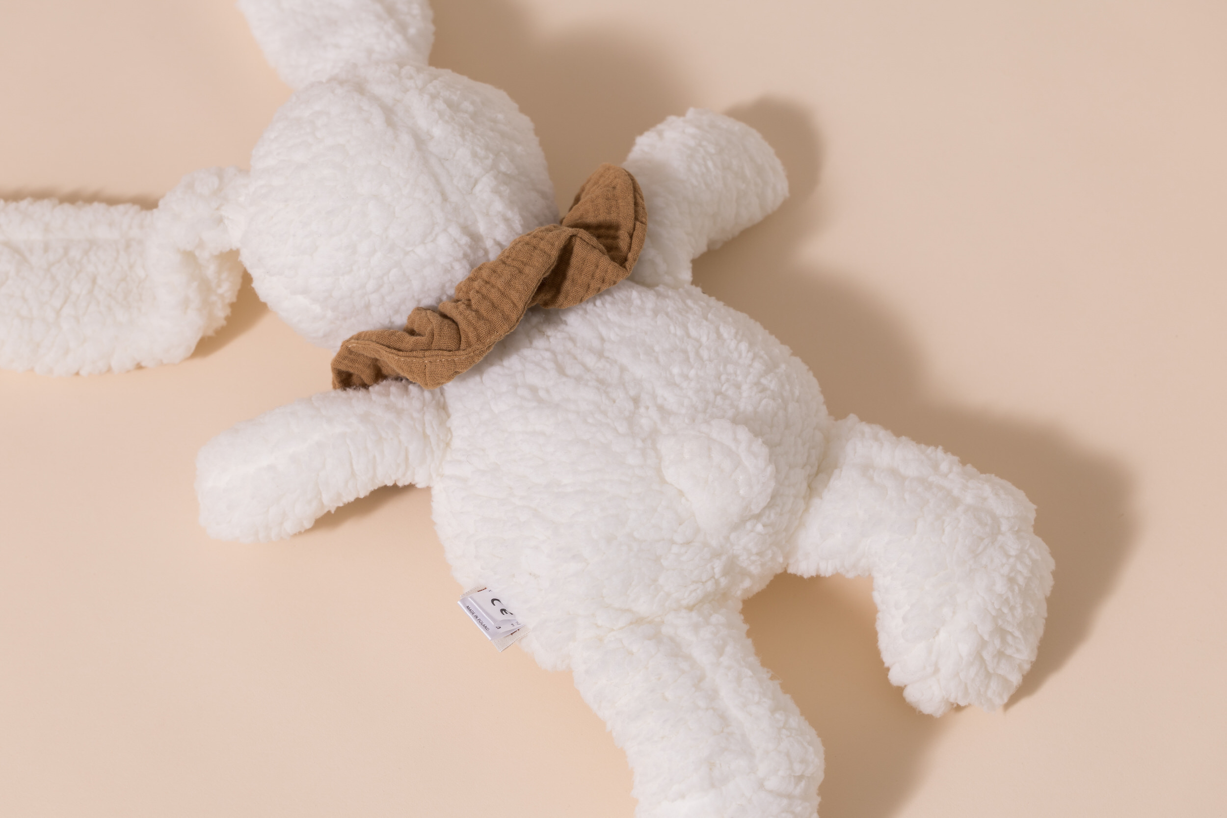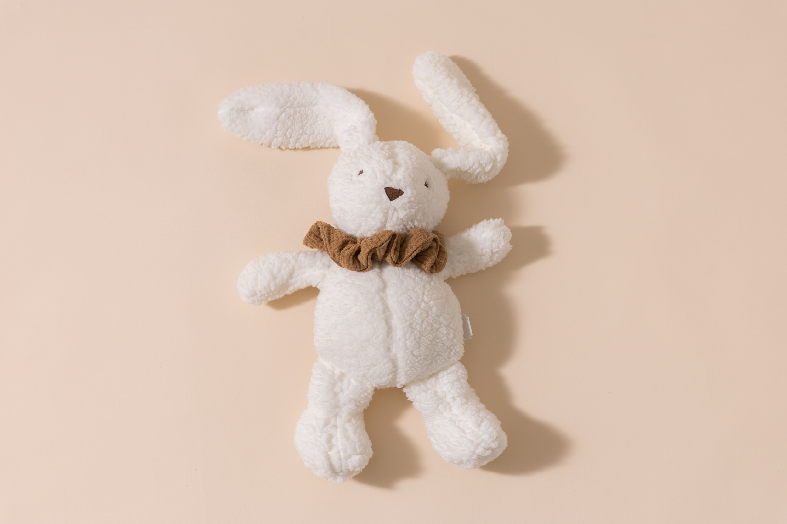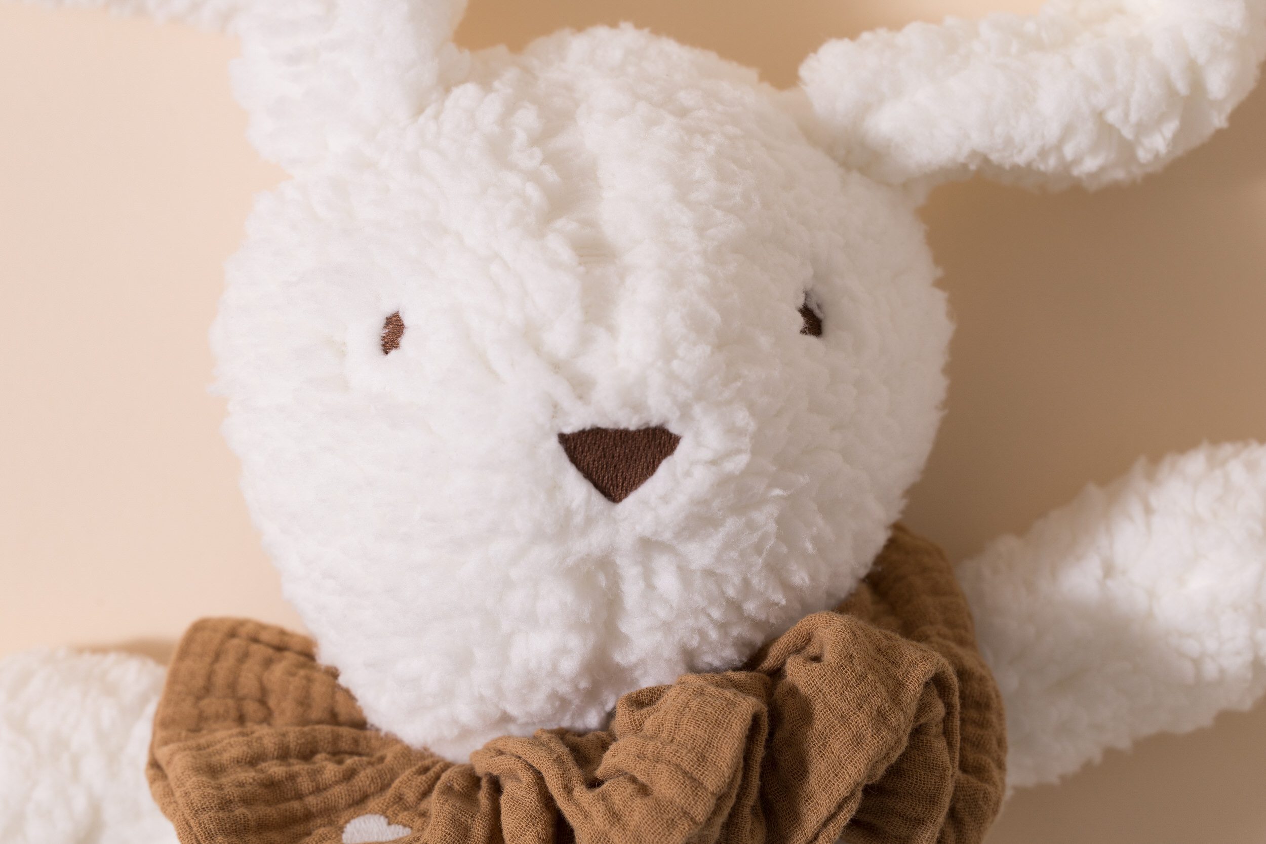 Un peluche con forma de conejito, suave y acogedora, que ofrece un confort y una calidez excepcionales – ideal para abrazos y momentos tranquilos.