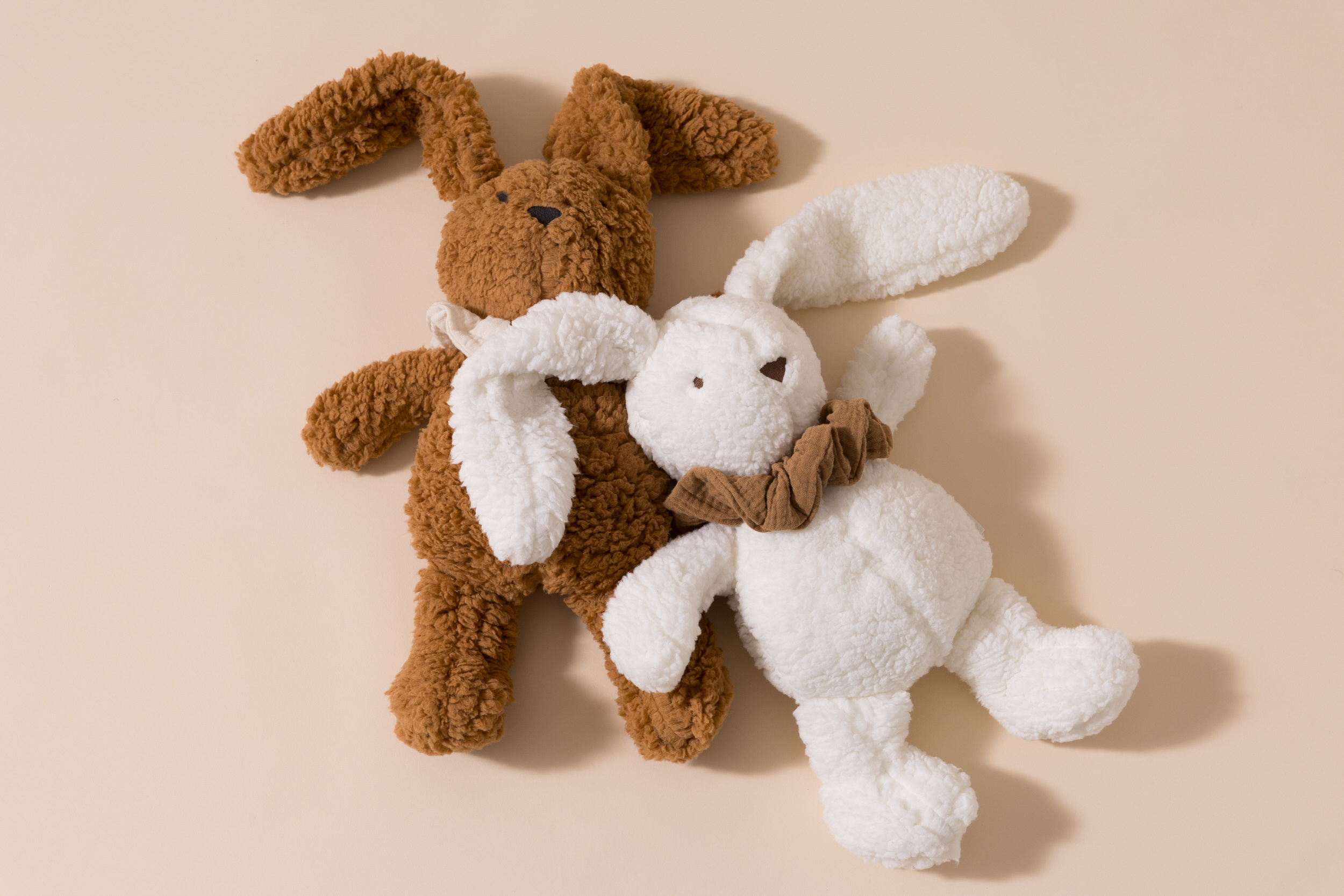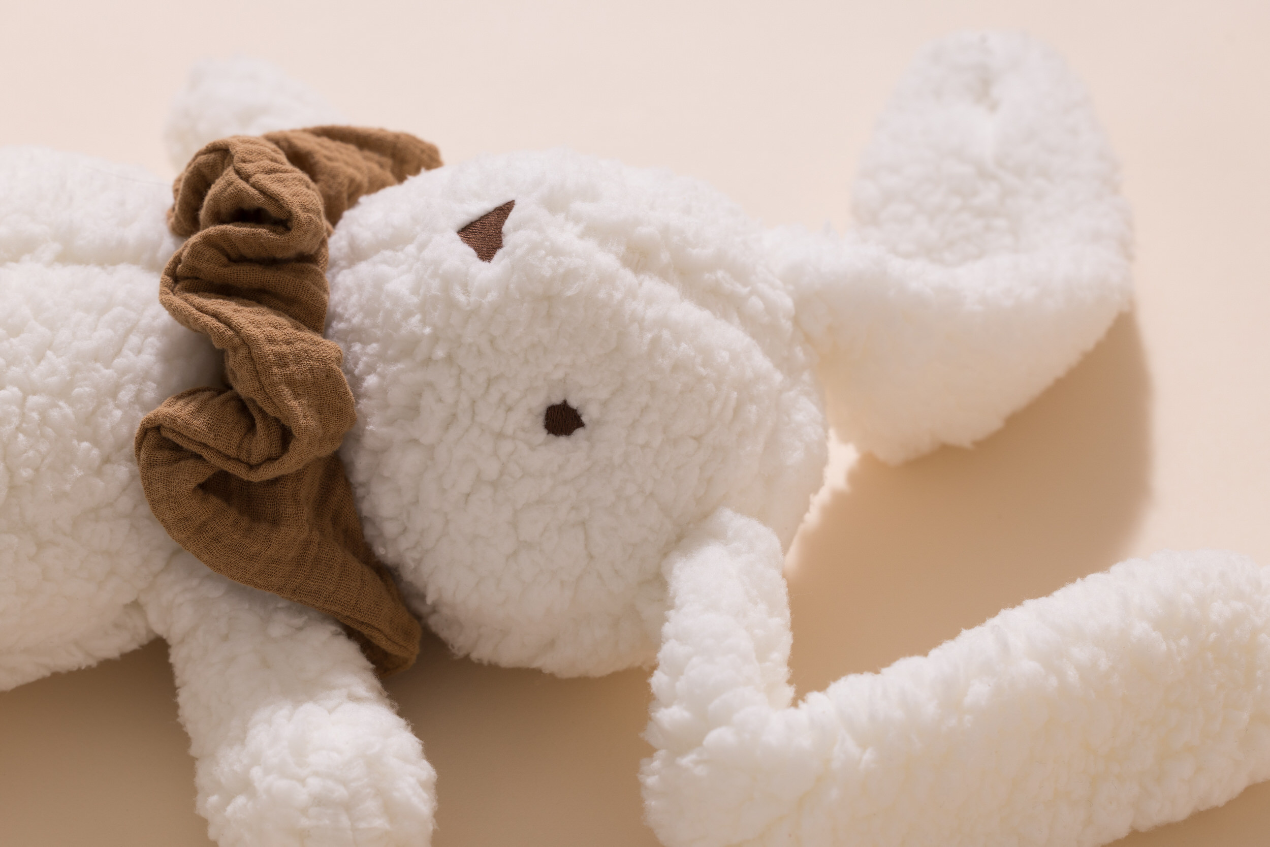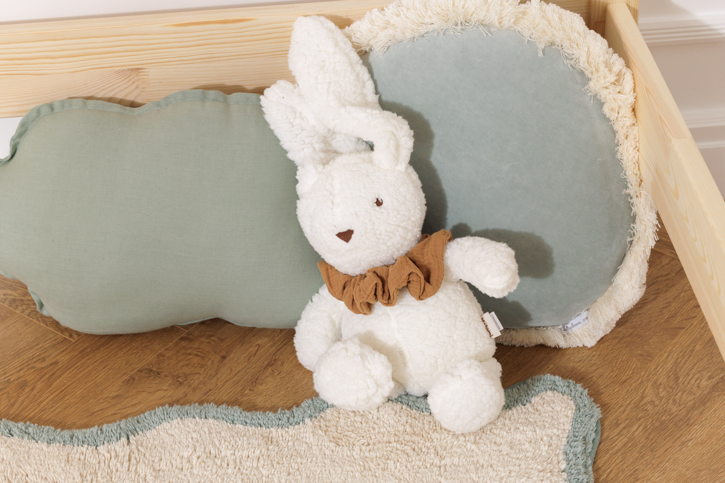 Un peluche con forma de conejito, suave y acogedora, que ofrece un confort y una calidez excepcionales – ideal para abrazos y momentos tranquilos.