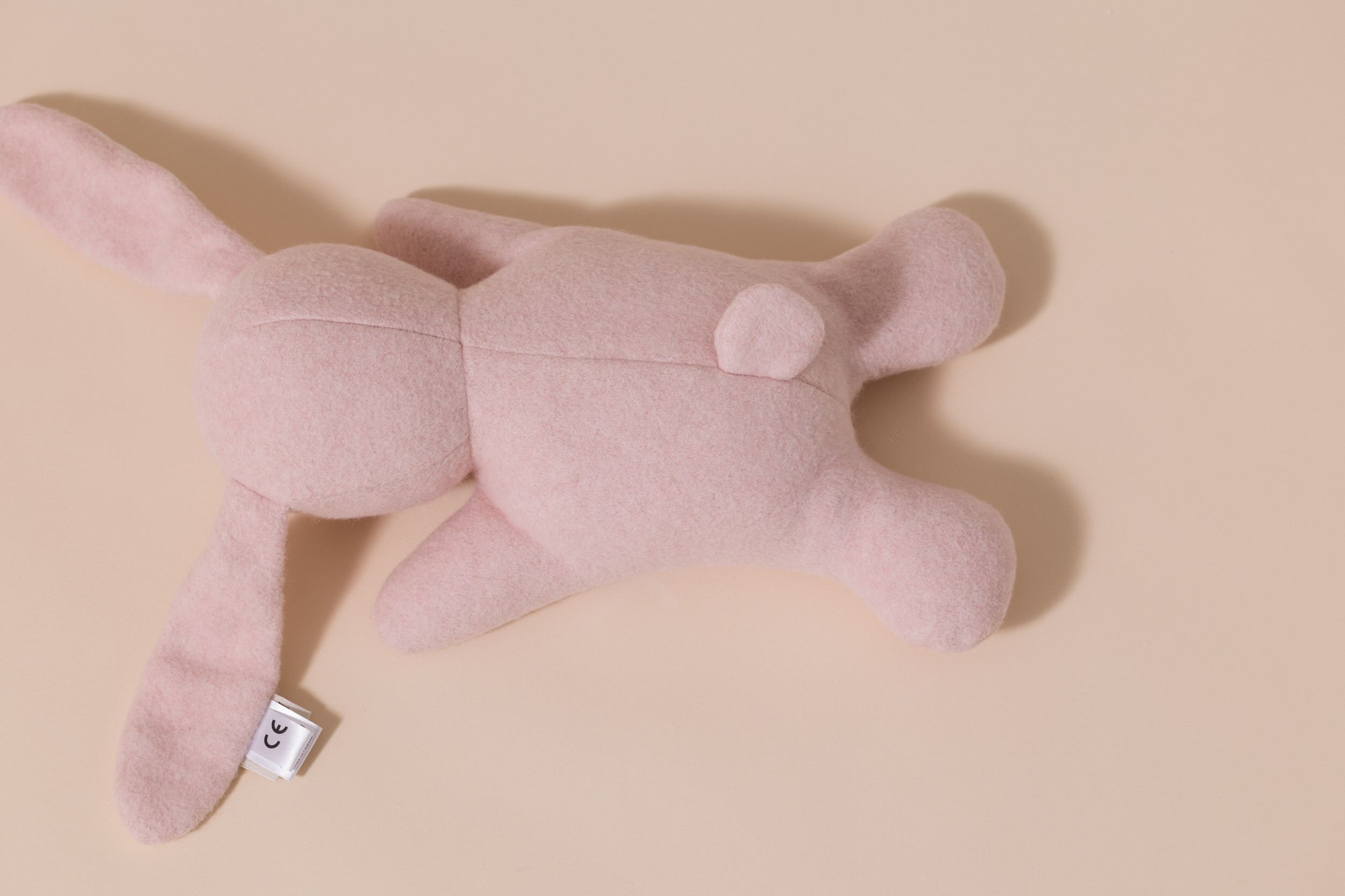 Un peluche suave con forma de conejito, hecho de algodón orgánico y muy agradable al tacto.