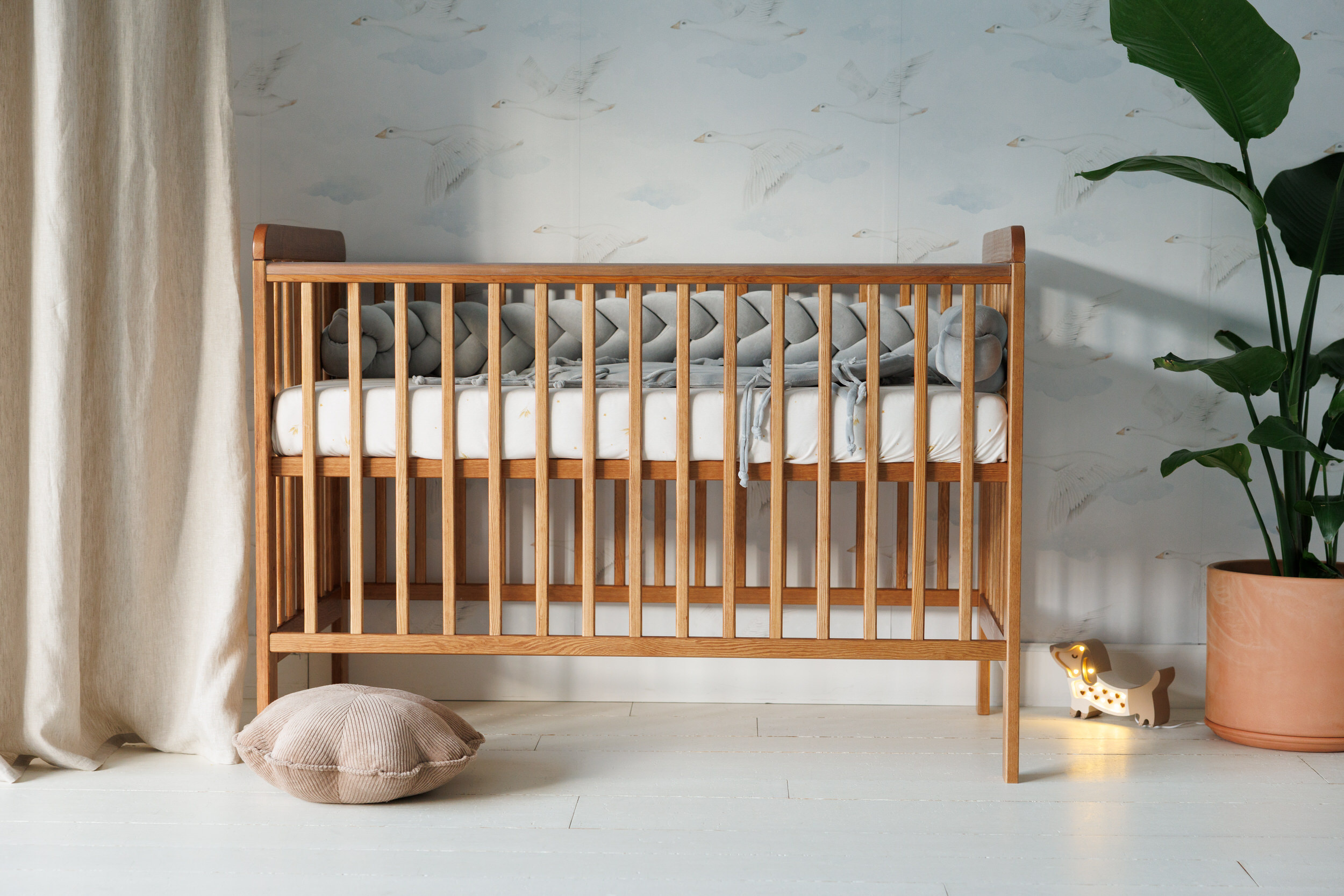 Cuando el bebé crezca, desate el contorno trenzado del colchón y úsalo como protector de cama.