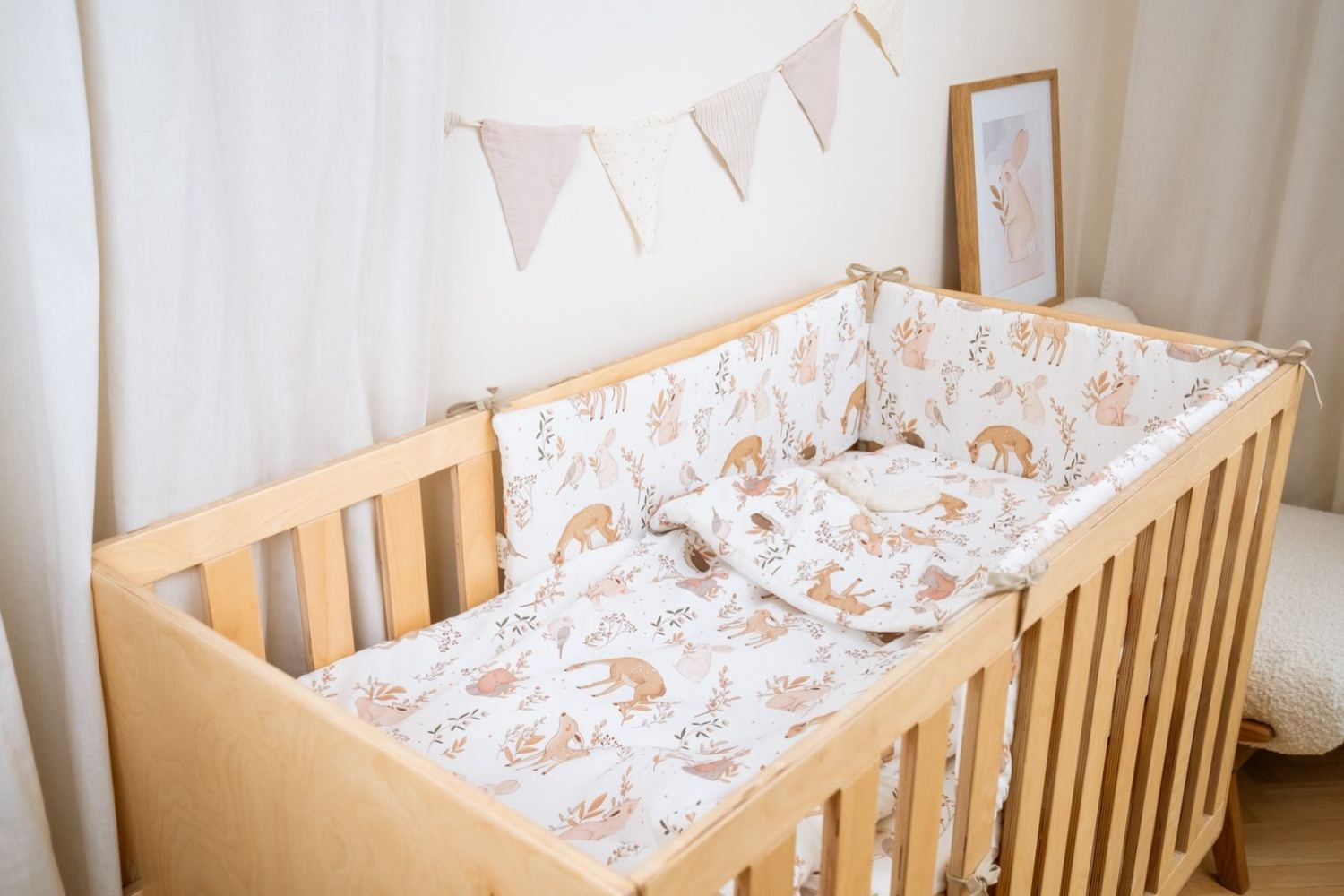 Nuestro protector de cuna está diseñado para cunas estándar de 60 × 120 cm.