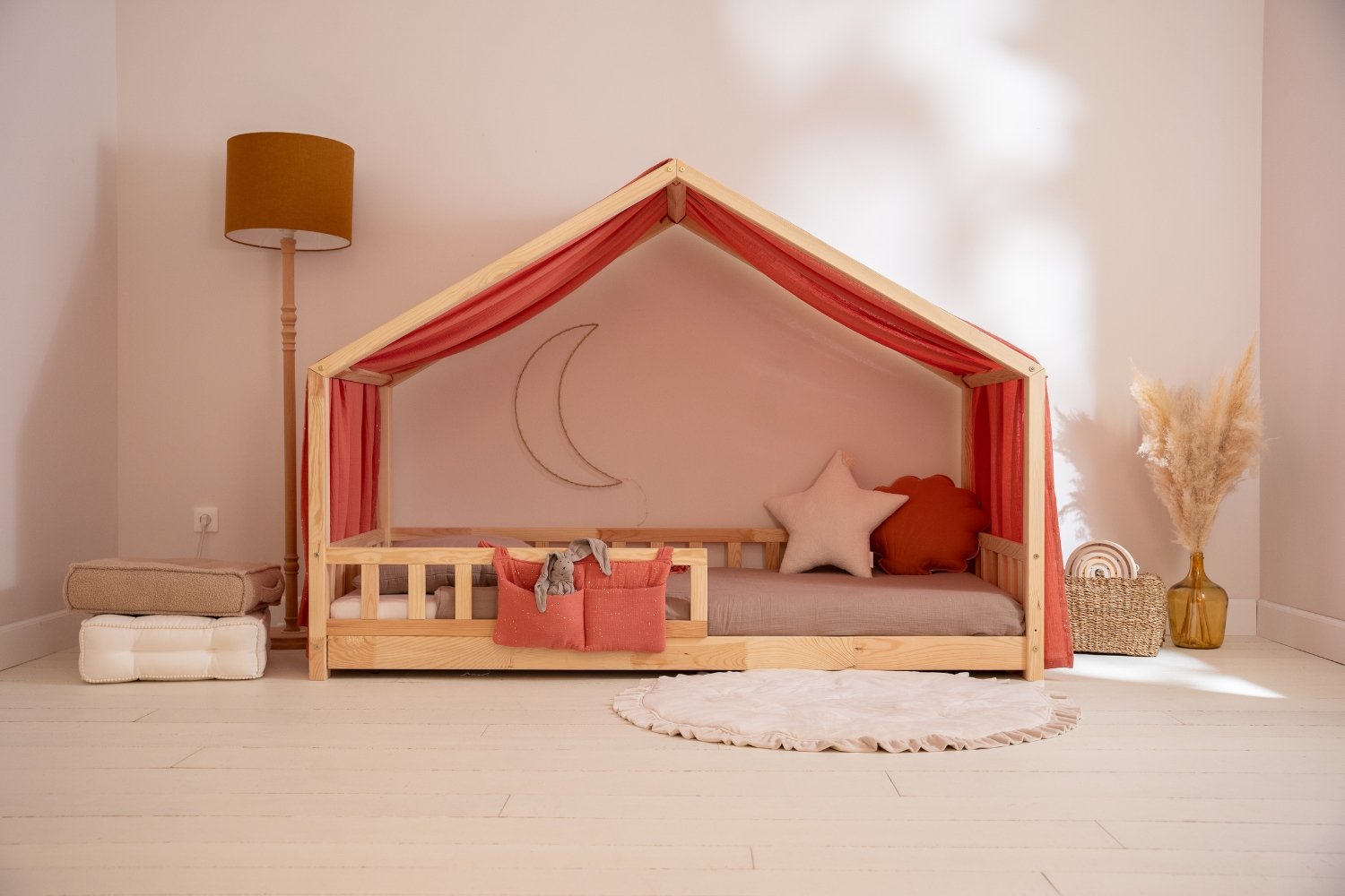 Transforma la cama Casita de tu hijo en un lugar encantado con nuestras maravillosas telas de muselina de algodón. Con 21 tamaños y 24 colores disponibles, tendrás la oportunidad de crear un espacio acogedor, único y totalmente adaptado a la personalidad de tu pequeño.