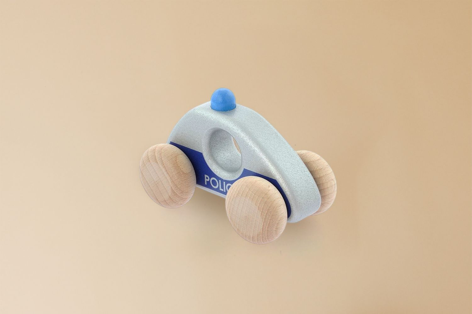 El coche tiene partes sin pintar de acuerdo con los valores de la empresa Bajo, que asegura que cada juguete tiene una parte de madera natural y sin pintar.