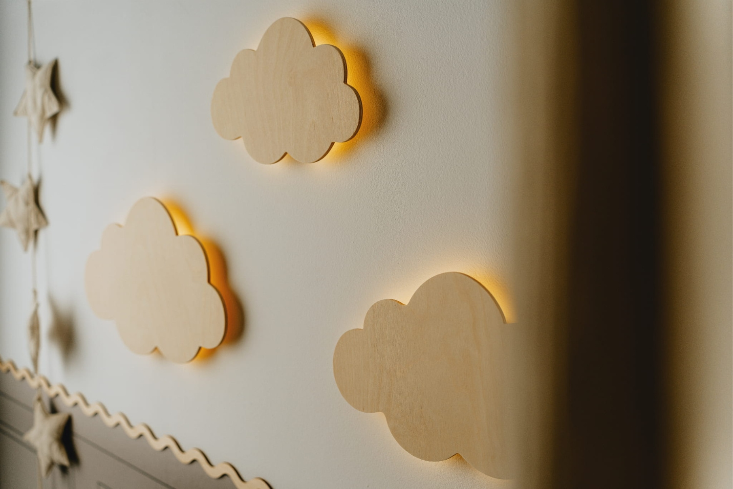 La couleur naturelle du bois s’intègre parfaitement au style de la chambre de vos enfants et la douce lumière ne perturbera pas le sommeil de votre bébé.