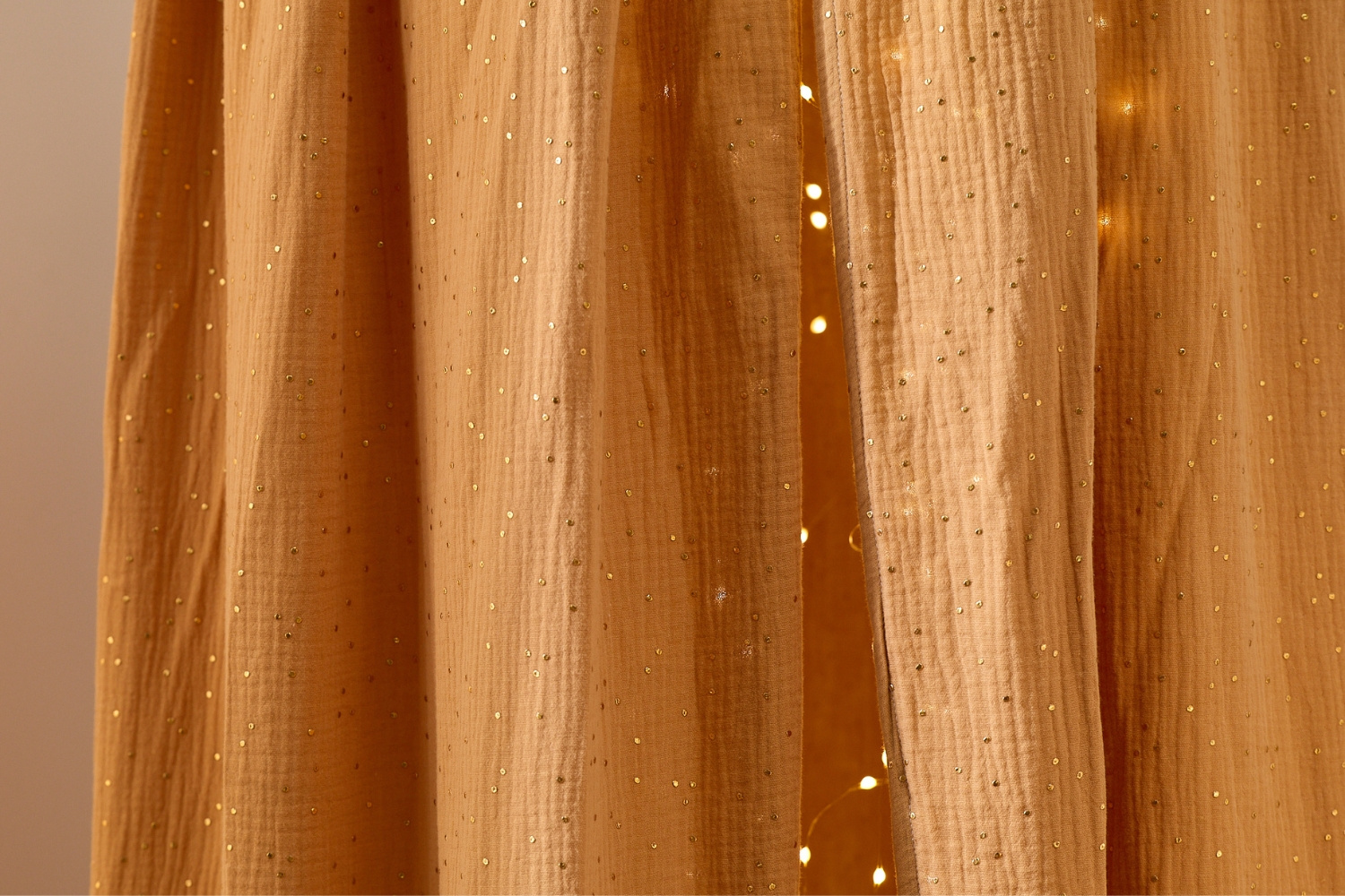 Il peut être suspendu à un crochet au plafond (non inclus) ou à un support spécial. Il crée un espace calme et fermé au-dessus du lit de l'enfant, offrant un lieu sûr pour se reposer.