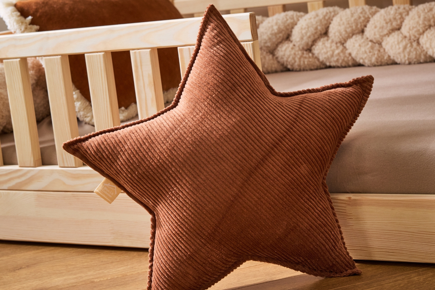Coussin Étoile en Velours Côtelé Caramel